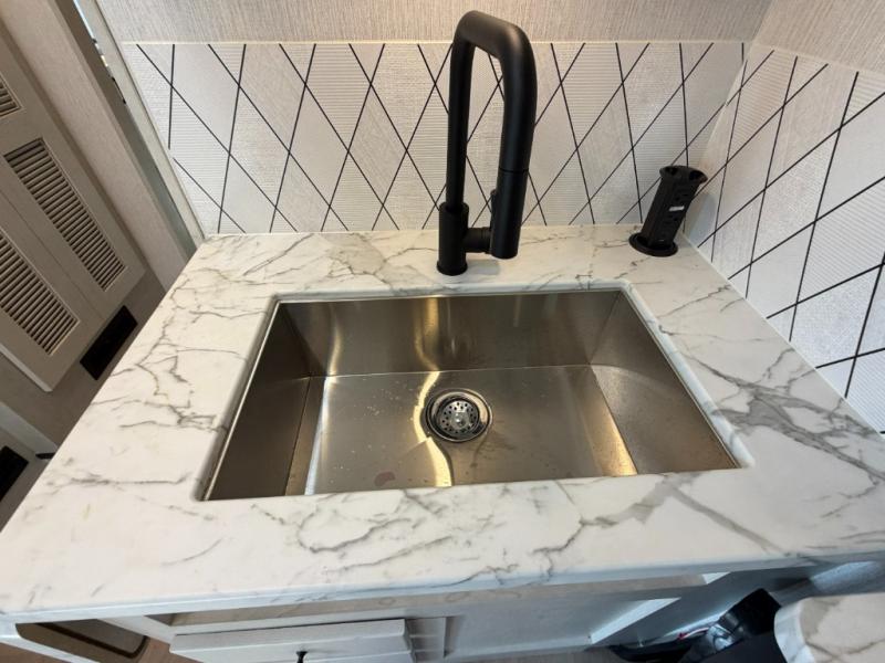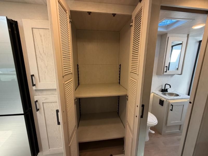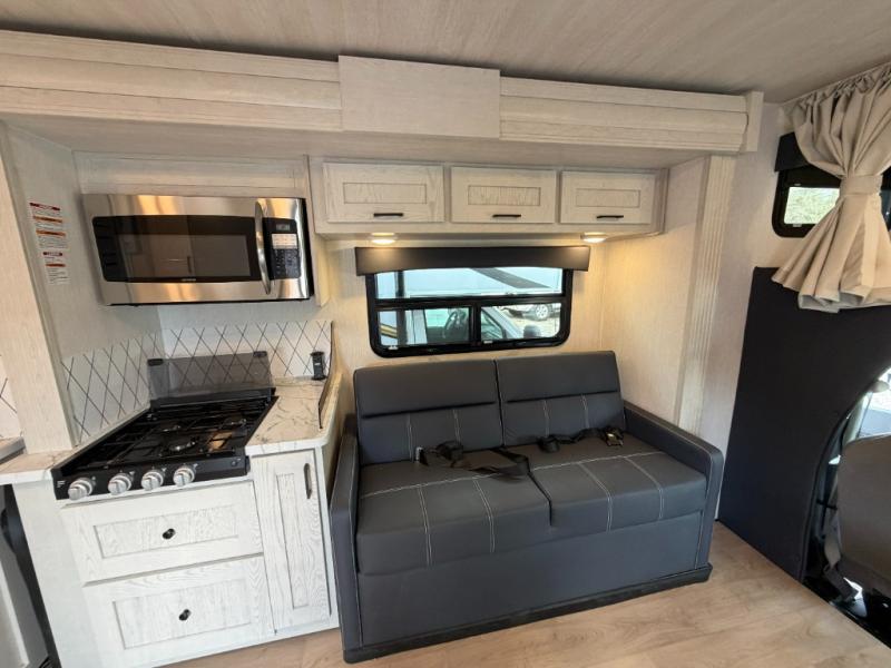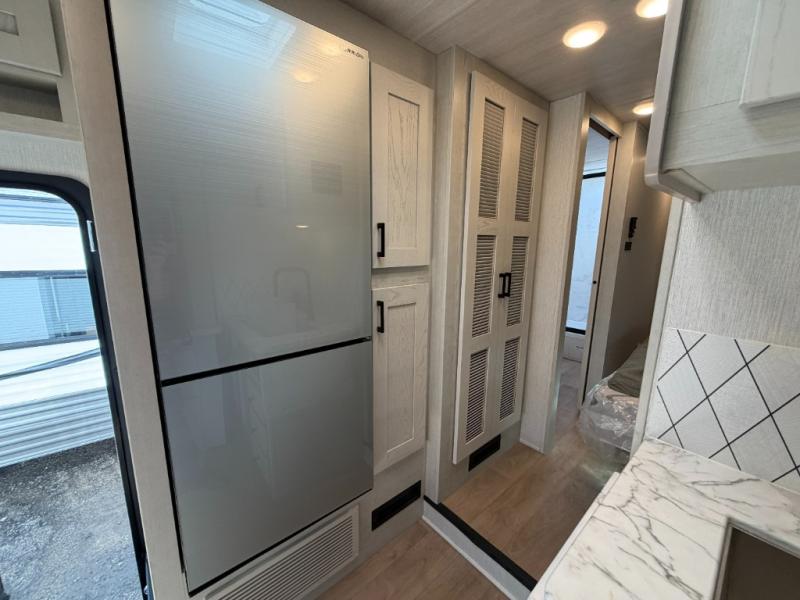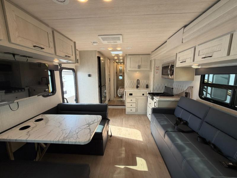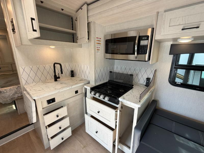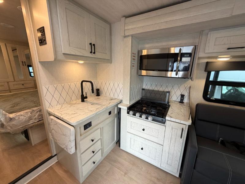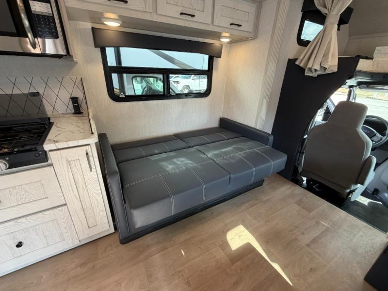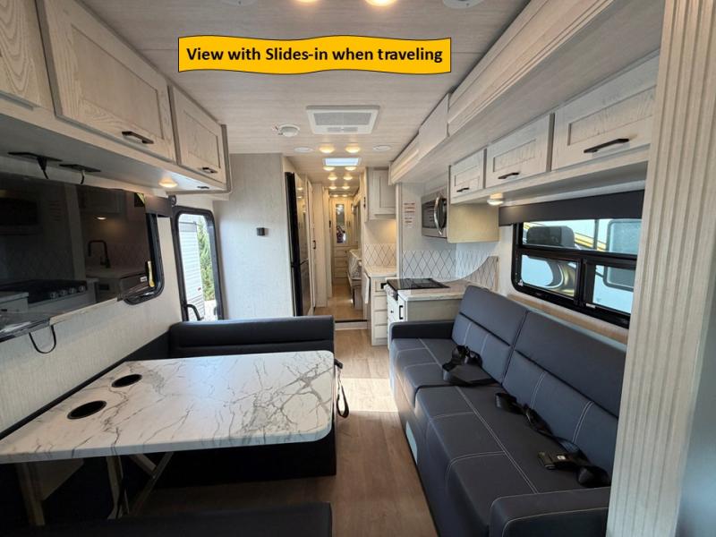 Pack your bags and load up this motorhome for a fun vacation on the road! The rear corner bedroom has a king bed slide for more floor space and a large wardrobe to keep your clothes looking their best. Speaking of clothes, you can add an optional washer and dryer just outside the rear corner bathroom to have clean clothes the entire time. There is a 24" x 32" shower to freshen up in after a long day of traveling, and you can fill your belly with a home cooked meal with the three burner cooktop and 10 cu. ft. 12V refrigerator that will keep your perishables fresh. Eat your meals at the booth dinette then let your stomach settle as you lay on the sofa!