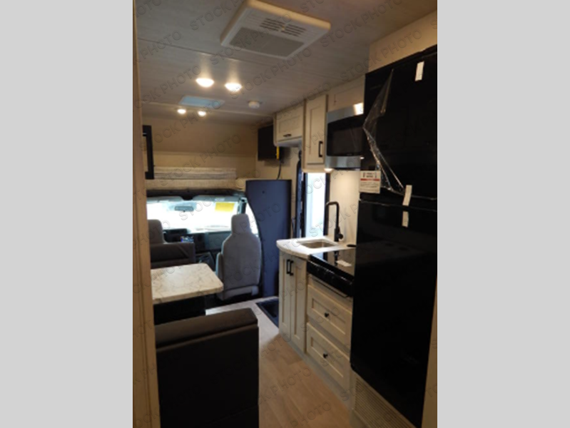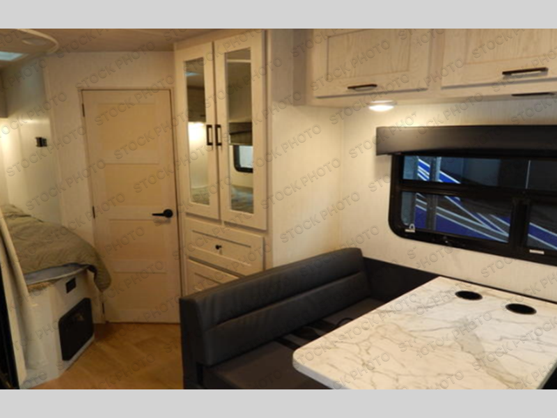 Load up your crew and head across the states in this coach that sleeps four to five each night. You will wake up feeling refreshed after sleeping on the 58" x 78" queen bed in the rear corner, and the adjacent full bath will let you easily get ready for the day. There are also overhead cabinets above the bed to keep your books and belongings organized. Once you've made breakfast on the three-burner stove or in the residential microwave, you can dine at the booth dinette. This coach also includes a cab-over bunk with an optional entertainment center!