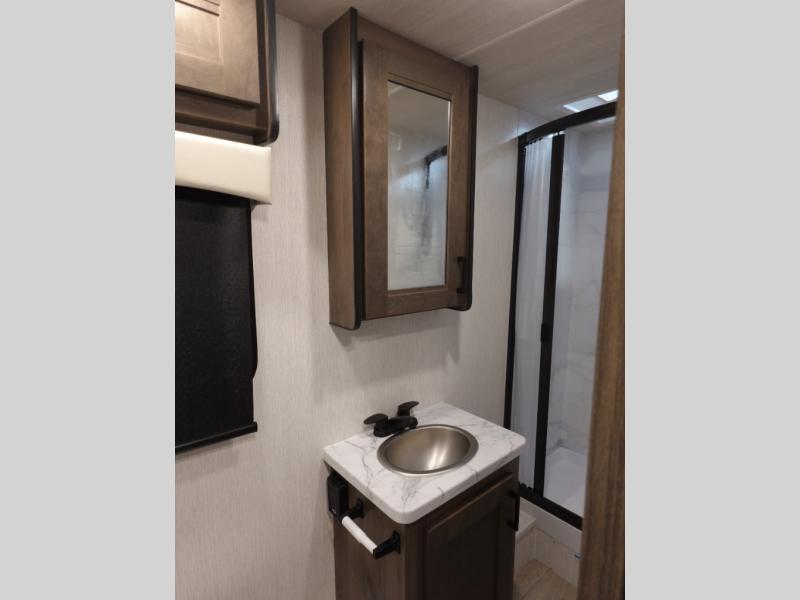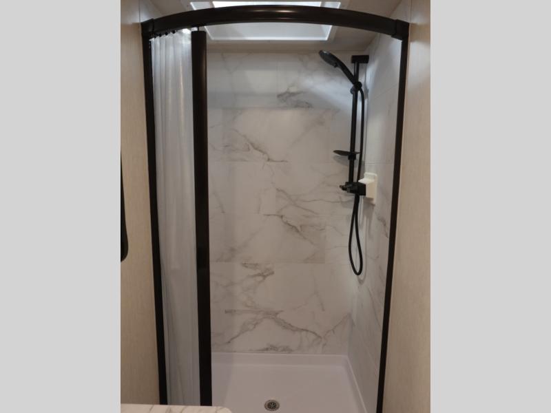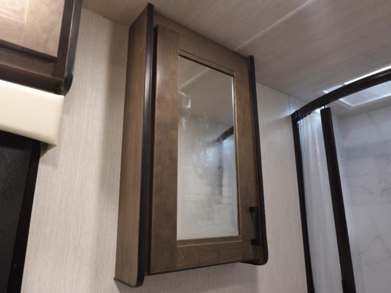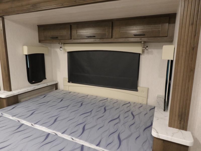 Experience your best vacations in this motorhome! You and your spouse will enjoy having your own private bedroom with a 72" x 74" king bed slide and a wardrobe to store your clothes. Next to the bedroom is the rear corner bathroom which has a 24" x 32" shower with a skylight and an area to add the optional washer and dryer combo. Prepare your best home cooked meals with the three burner cooktop and the residential 10 cu. ft. refrigerator with 1,000 watt inverter, and enjoy them at the booth dinette which can transform into an extra sleeping space. Speaking of sleeping spaces, you can also use the bunk over cab as a sleeping spot and transform the 64" hide-a-bed sofa into a sleeping space too!
