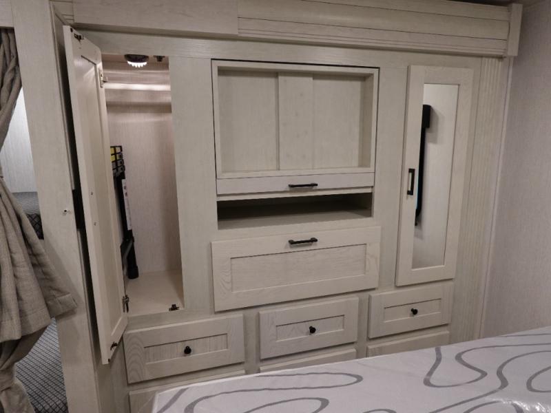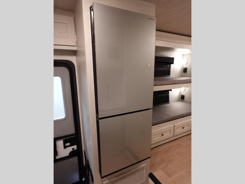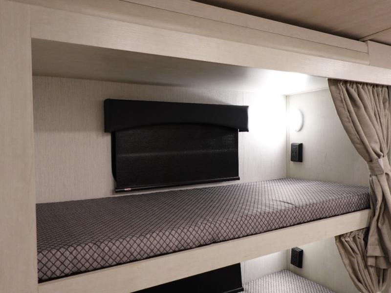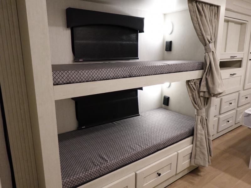 With a set of bunk beds, the grandkids can come along on all of your great adventures with this motorhome! The rear private bedroom has a queen bed for you to lay your head on at night with a wardrobe closet across from it to keep your clothes looking their best. The full bathroom is across from the bunk beds and has a shower with a skylight above and a flexible hose with the shower head, plus there is an outside shower to keep the sand outdoors. The booth dinette is not only great for enjoying your meals and playing card games, but also for transforming into an extra sleeping space. End your nights in true relaxation by sitting in one of the two recliners!