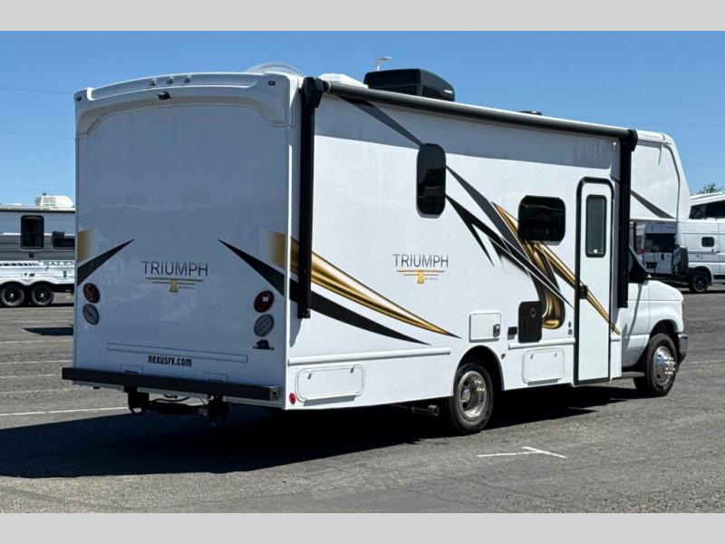 Build your dream with one of these NeXus RV Triumph Sport Series Class C gas motorhomes! Their high strength low alloy lightweight steel cage sidewalls and roof is 72% stronger and the composite substrate is impervious to water, plus their seamless fiberglass roof is damage resistant too. There are rubber-lined galvanized steel trunk boxes to keep your gear secure, an electric awning with LED lighting, and a rear back up camera to make parking easier than ever. You will enjoy their sleek interiors with upgraded flooring, upgraded window treatments, and night roller shades. There is also a generator to keep you powered up and a TV in the living room for your entertainment needs!