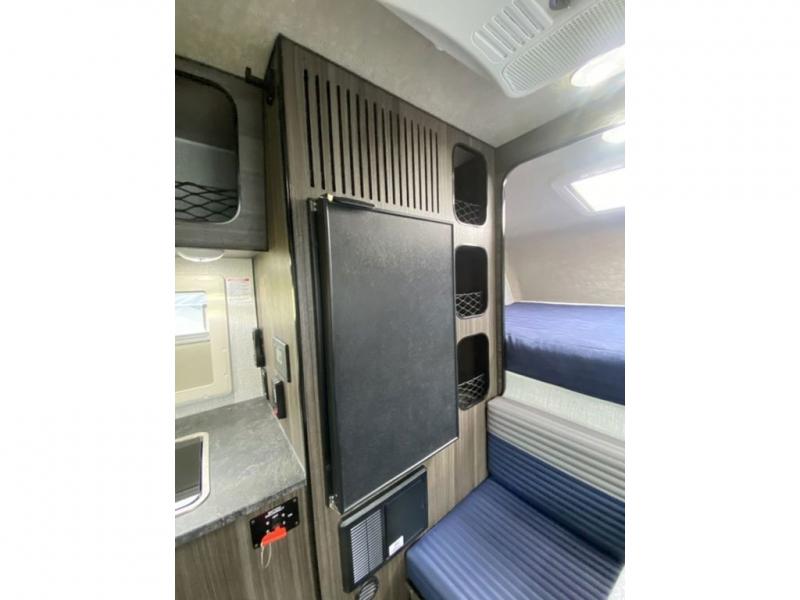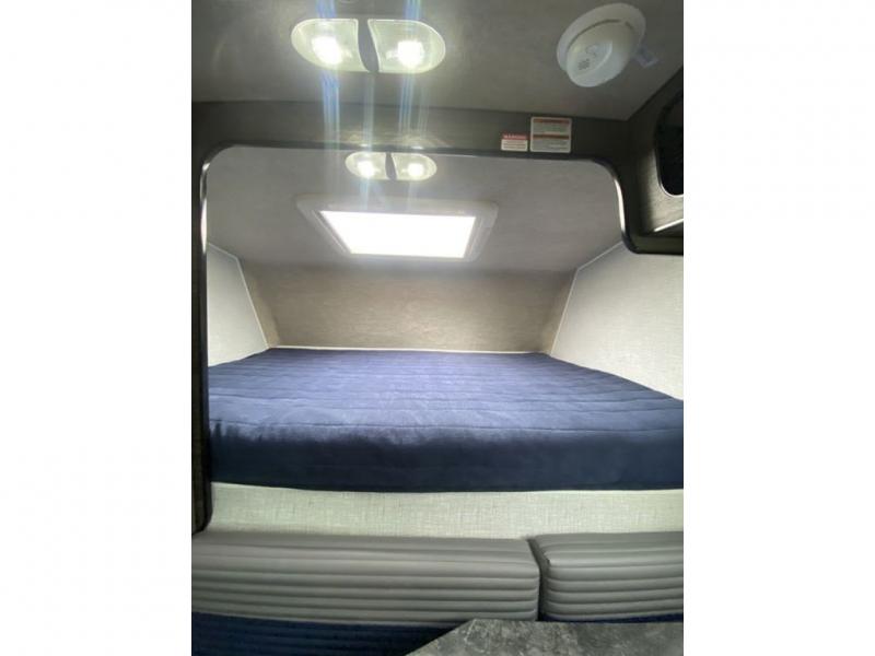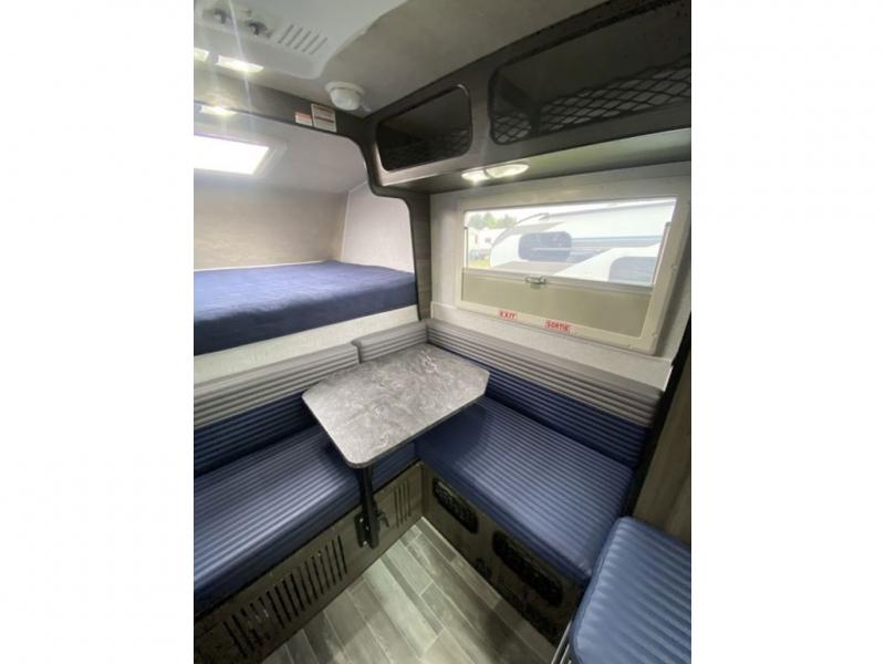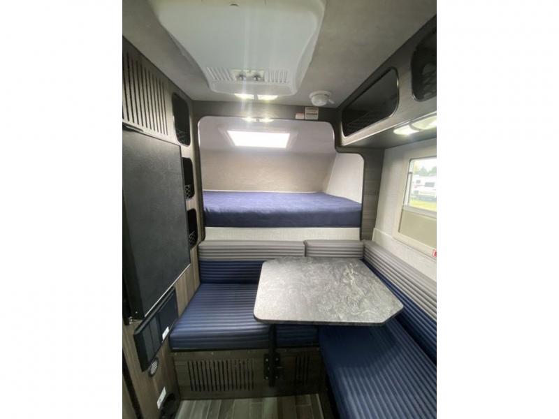 Head for the hills in this half-ton truck camper for three! After driving to your destination all day, you can make lunch on the two burner cooktop once you set up camp, and there is a sink with a folding faucet to clean up. The dinette will be perfect for meals times, and you can convert this to a bed if you have a guest. A Thetford cassette toilet will make nighttime restroom breaks easier than ever, and you'll sleep soundly on the front bed.