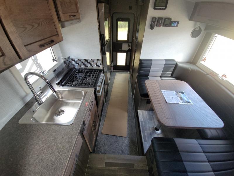Enjoy a home on top of your long bed truck with this truck camper! Start each morning feeling recharged after sleeping on the front queen bed while your electronics recharge at the 12V USB charging stations. Fill your bellies with fried bacon and eggs cooked on the three burner stove with oven and drink a cold glass of orange juice stored in the 6.3 cu. ft. two way refrigerator. Plus, you can eat your meals at the face-to-face dinette and transform into an extra sleeping space. You can even freshen up each morning in the dry bath with extra room, a divider that separates the shower from the toilet, and a built-in shower seat. There is plenty of storage throughout with closets and overhead cabinets too! An optional 600AH lithium power system and optional Truma Combi furnace/hot water system can be added on this model for even more comfort and convenience!