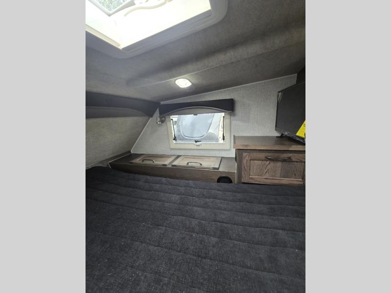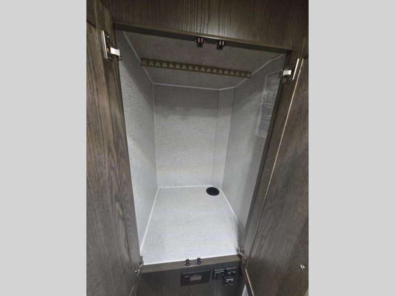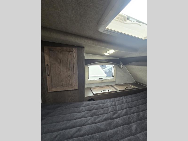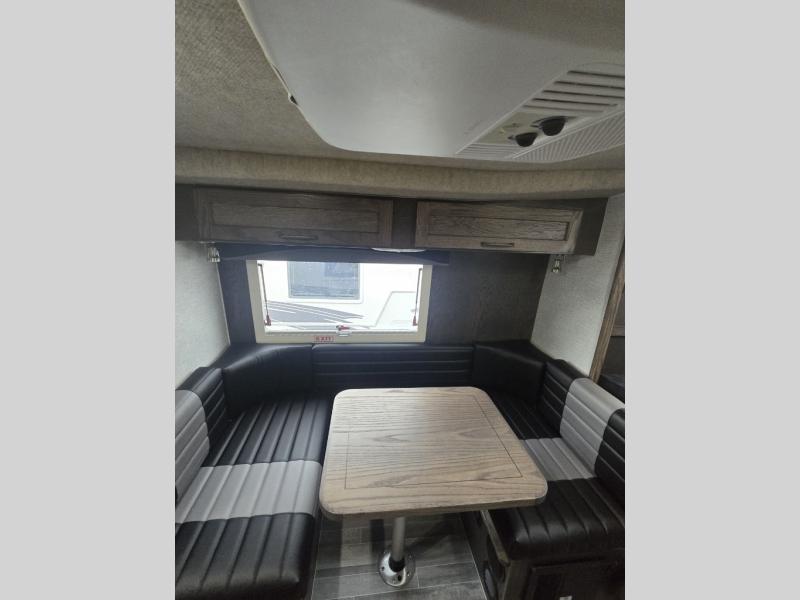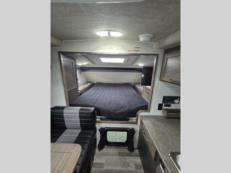 Enjoy a home on top of your long bed truck with this truck camper! Start each morning feeling recharged after sleeping on the front queen bed while your electronics recharge at the 12V USB charging stations. Fill your bellies with fried bacon and eggs cooked on the three burner stove with oven and drink a cold glass of orange juice stored in the 6.3 cu. ft. three way refrigerator. Plus, you can eat your meals at the face-to-face dinette and transform into an extra sleeping space. You can even freshen up each morning in the dry bath with extra room, a divider that separates the shower from the toilet, and a built-in shower seat. There is plenty of storage throughout with closets and overhead cabinets too!