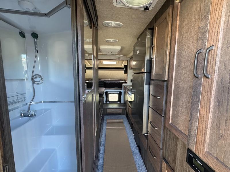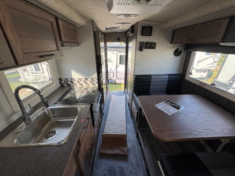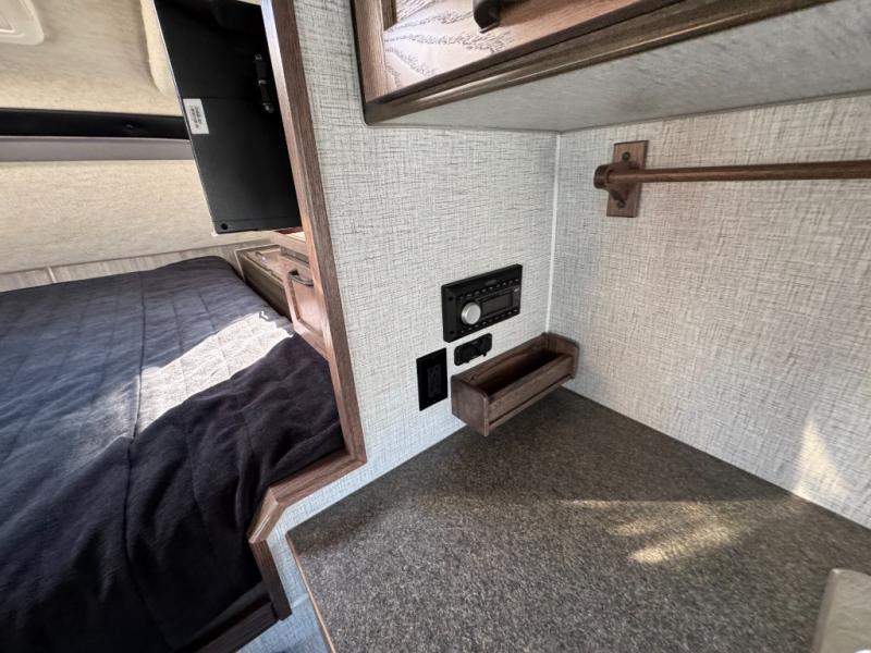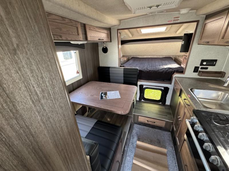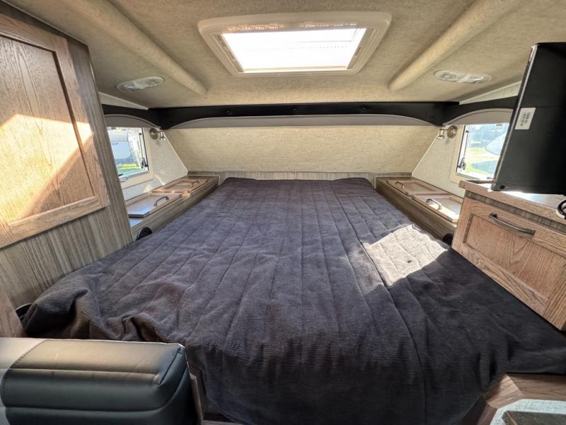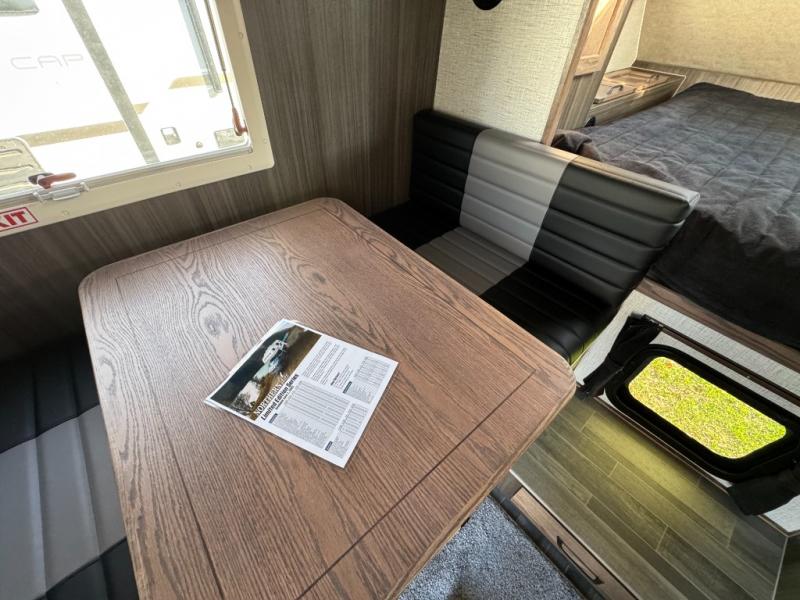 Enjoy a home on top of your long bed truck with this truck camper! Start each morning feeling recharged after sleeping on the front queen bed while your electronics recharge at the 12V USB charging stations. Fill your bellies with fried bacon and eggs cooked on the three burner stove with oven and drink a cold glass of orange juice stored in the 6.3 cu. ft. two way refrigerator. Plus, you can eat your meals at the face-to-face dinette and transform into an extra sleeping space. You can even freshen up each morning in the dry bath with extra room, a divider that separates the shower from the toilet, and a built-in shower seat. There is plenty of storage throughout with closets and overhead cabinets too! An optional 600AH lithium power system and optional Truma Combi furnace/hot water system can be added on this model for even more comfort and convenience!