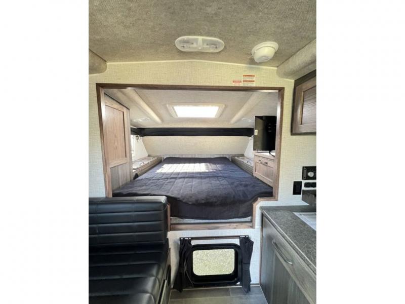 Enjoy a home on top of your long bed truck with this truck camper! Start each morning feeling recharged after sleeping on the front queen bed while your electronics recharge at the 12V USB charging stations. Fill your bellies with fried bacon and eggs cooked on the three burner stove with oven and drink a cold glass of orange juice stored in the 6.3 cu. ft. two way refrigerator. Plus, you can eat your meals at the face-to-face dinette and transform into an extra sleeping space. You can even freshen up each morning in the dry bath with extra room, a divider that separates the shower from the toilet, and a built-in shower seat. There is plenty of storage throughout with closets and overhead cabinets too! An optional 600AH lithium power system and optional Truma Combi furnace/hot water system can be added on this model for even more comfort and convenience!