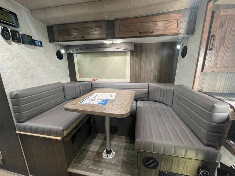 Enjoy a home on top of your long bed truck with this truck camper! Start each morning feeling recharged after sleeping on the front queen bed while your electronics recharge at the 12V USB charging stations. Fill your bellies with fried bacon and eggs cooked on the three burner stove with oven and drink a cold glass of orange juice stored in the 6.3 cu. ft. two way refrigerator. Plus, you can eat your meals at the face-to-face dinette and transform into an extra sleeping space. You can even freshen up each morning in the dry bath with extra room, a divider that separates the shower from the toilet, and a built-in shower seat. There is plenty of storage throughout with closets and overhead cabinets too! An optional 600AH lithium power system and optional Truma Combi furnace/hot water system can be added on this model for even more comfort and convenience!