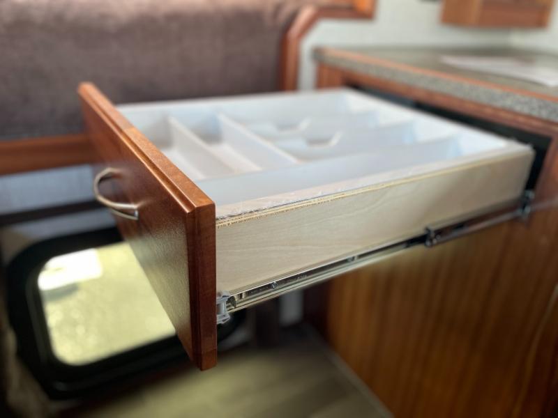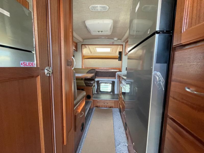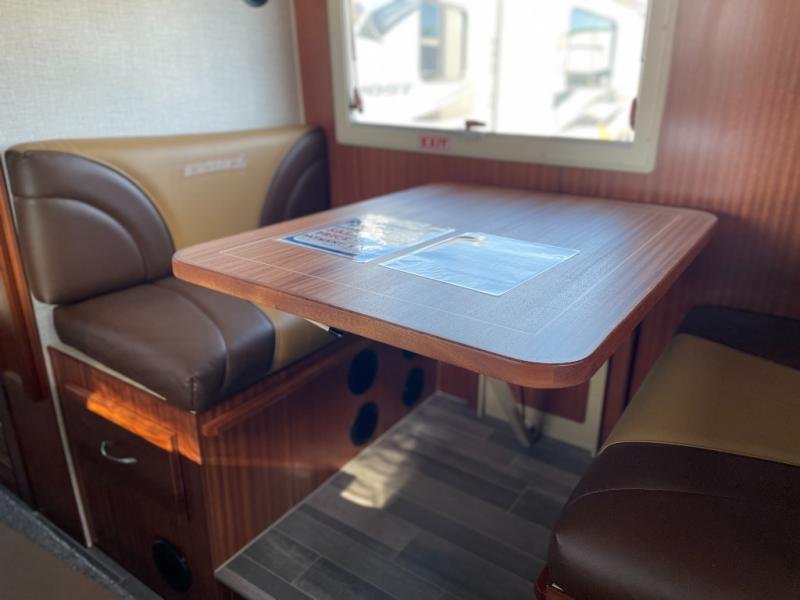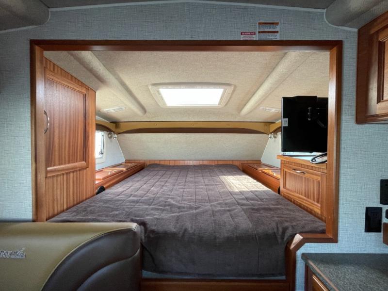 Enjoy a home on top of your long bed truck with this truck camper! Start each morning feeling recharged after sleeping on the front queen bed while your electronics recharge at the 12V USB charging stations. Fill your bellies with fried bacon and eggs cooked on the three burner stove with oven and drink a cold glass of orange juice stored in the 6.3 cu. ft. two way refrigerator. Plus, you can eat your meals at the face-to-face dinette and transform into an extra sleeping space. You can even freshen up each morning in the wet bath. There is plenty of storage throughout with closets and overhead cabinets too! An optional 600AH lithium power system and optional Truma Combi furnace/hot water system can be added on this model for even more comfort and convenience!