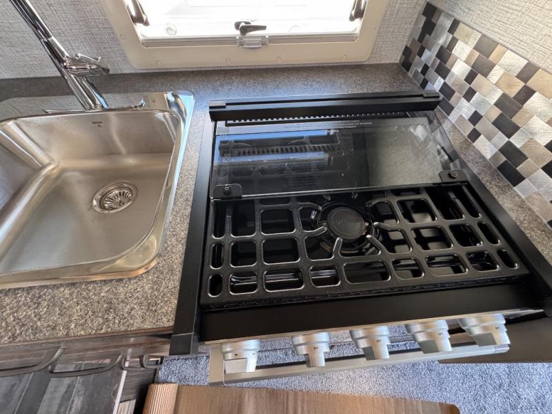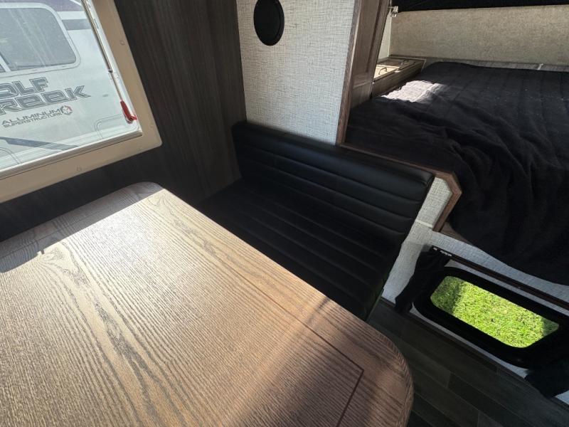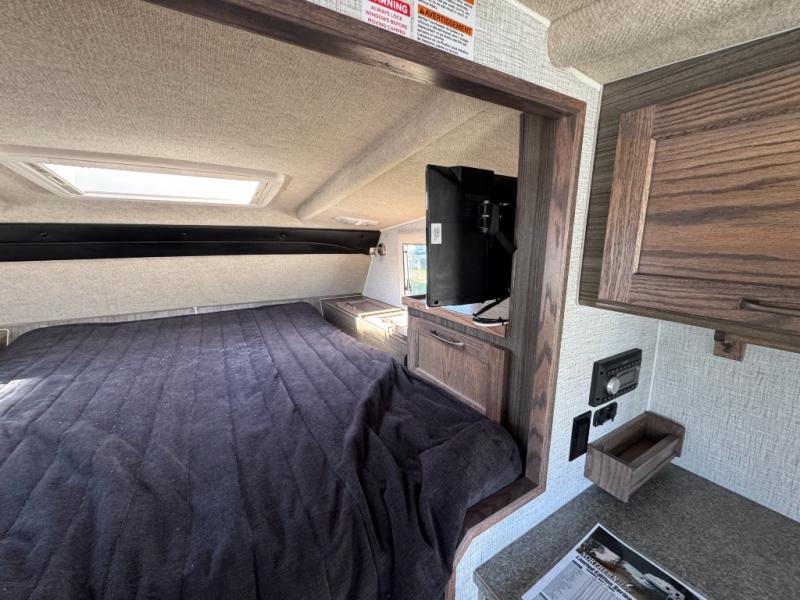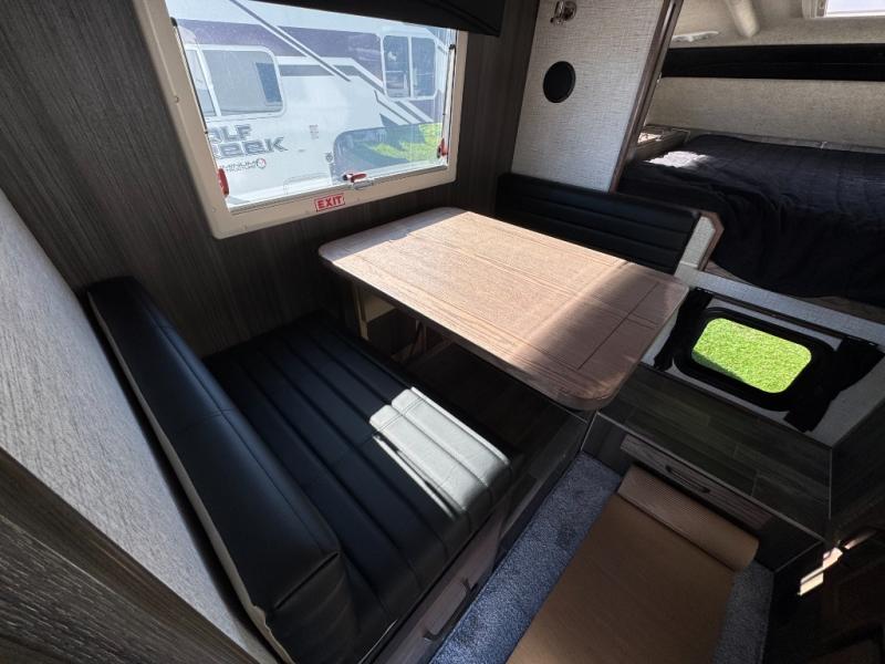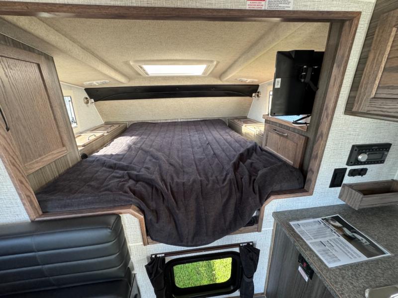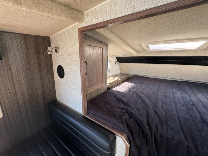 If you have a short bed truck then you need this truck camper for your next adventure! Start each morning feeling recharged after sleeping on the front queen bed while your electronics recharge at the 12V USB charging stations. Fill your bellies with fried bacon and eggs cooked on the three burner stove with oven and drink a cold glass of orange juice stored in the 6.3 cu. ft. two way refrigerator. Plus, you can eat your meals at the face-to-face dinette and transform into an extra sleeping space. You can even freshen up each morning in the wet bath. There is plenty of storage throughout with closets and overhead cabinets too! An optional 600AH lithium power system and optional Truma Combi furnace/hot water system can be added on this model for even more comfort and convenience!