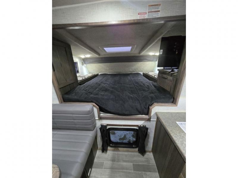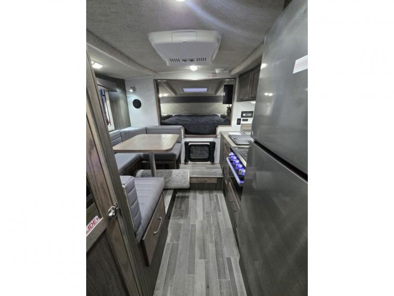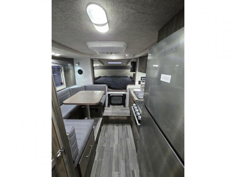If you have a short bed truck then you need this truck camper for your next adventure! Start each morning feeling recharged after sleeping on the front queen bed while your electronics recharge at the 12V USB charging stations. Fill your bellies with fried bacon and eggs cooked on the three burner stove with oven and drink a cold glass of orange juice stored in the 6.3 cu. ft. two way refrigerator. Plus, you can eat your meals at the face-to-face dinette and transform into an extra sleeping space. You can even freshen up each morning in the wet bath. There is plenty of storage throughout with closets and overhead cabinets too! An optional 600AH lithium power system and optional Truma Combi furnace/hot water system can be added on this model for even more comfort and convenience!