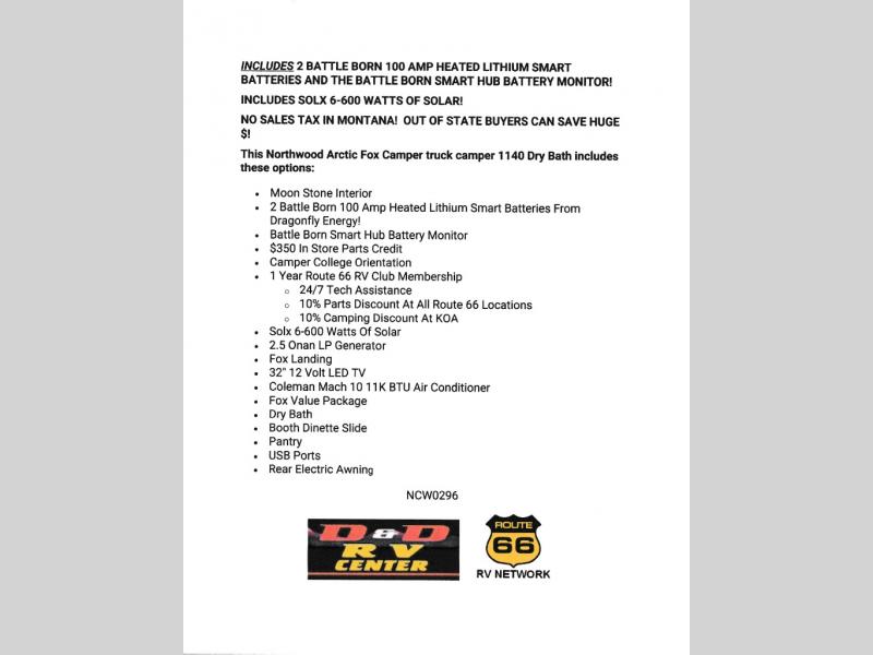 This Northwood Arctic Fox Camper truck camper 1140 Dry Bath includes these options:
