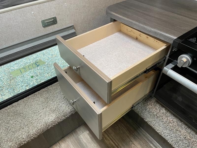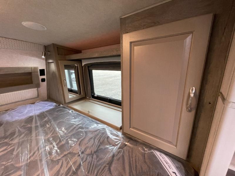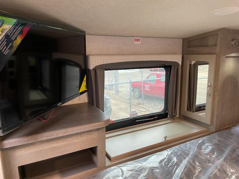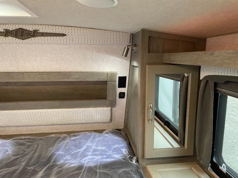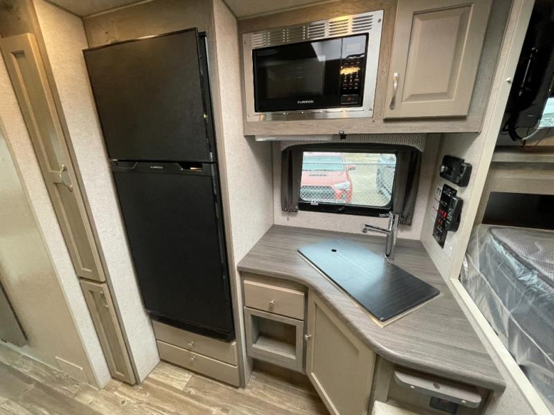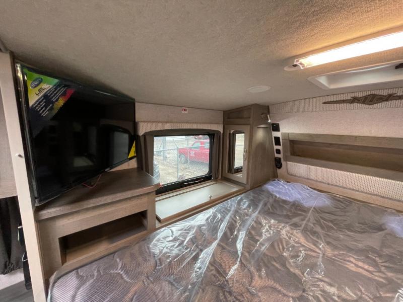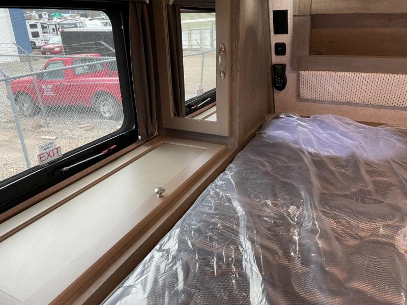 Get out and explore when you have this truck camper that allows you to easily setup camp with the electric jacks. Whether you hike around the campgrounds, fish the local pond or brought along your boat to fish on the lake, you can always return to your own NW TruRest queen mattress up front while you offer your friend or family member a space on the converted dinette that offers 42" x 76" of sleeping area. And there is a dry bath for you to get ready in. The cook will have three burner cooktop and microwave make meals, a 10 cu. ft. 12V refrigerator to store your cold items, and a pantry for dry goods. And you will find lots of wardrobes for clothing storage, two hampers for the dirty clothes, and overhead cabinets. You might even like to add the optional bunk above the dinette and there are more options to choose from to enhance this truck camper for your needs and wants.