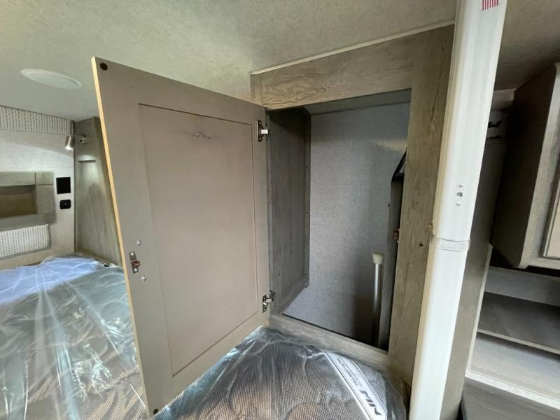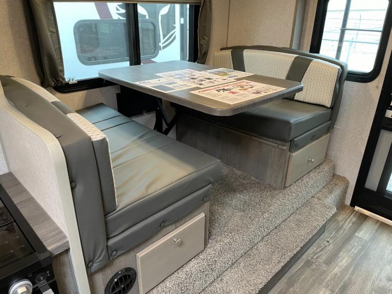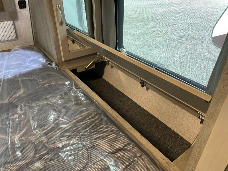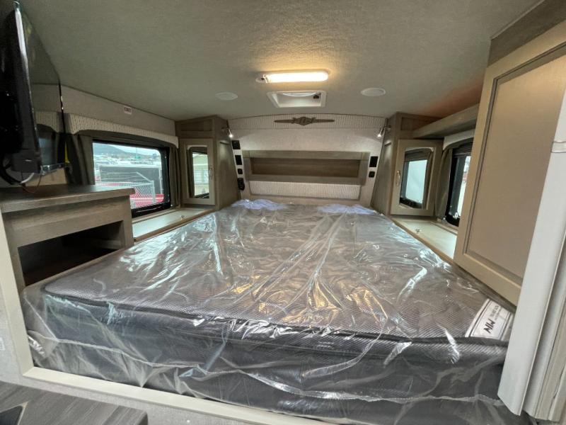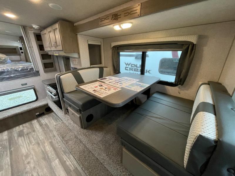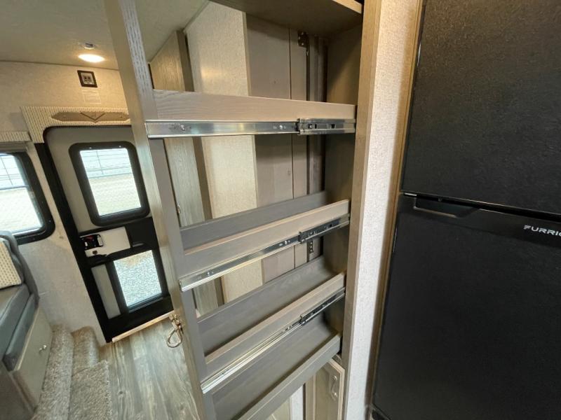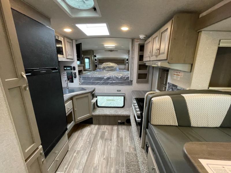 Get out and explore when you have this truck camper that allows you to easily setup camp with the electric jacks. Whether you hike around the campgrounds, fish the local pond or brought along your boat to fish on the lake, you can always return to your own NW TruRest queen mattress up front while you offer your friend or family member a space on the converted dinette that offers 42" x 76" of sleeping area. And there is a dry bath for you to get ready in. The cook will have three burner cooktop and microwave make meals, a 10 cu. ft. 12V refrigerator to store your cold items, and a pantry for dry goods. And you will find lots of wardrobes for clothing storage, two hampers for the dirty clothes, and overhead cabinets. You might even like to add the optional bunk above the dinette and there are more options to choose from to enhance this truck camper for your needs and wants.