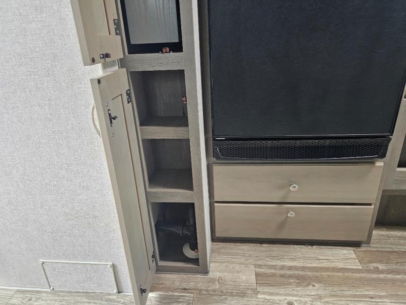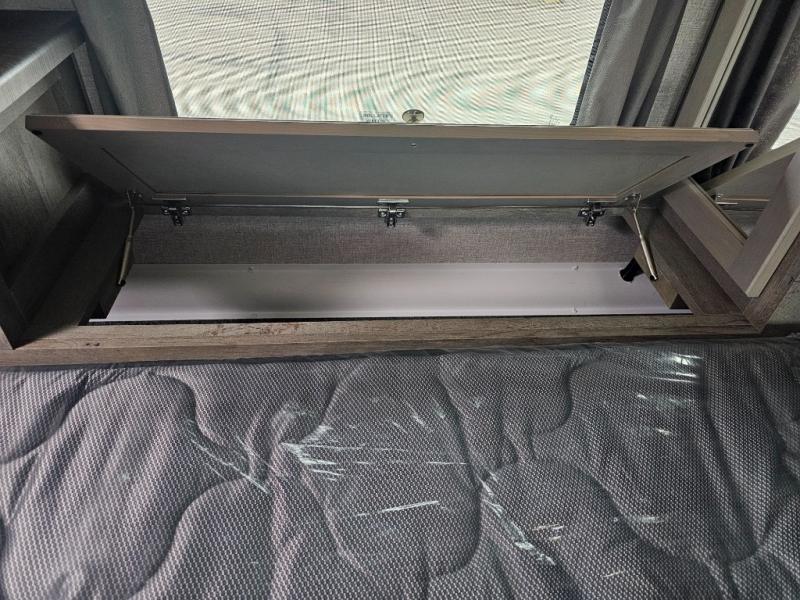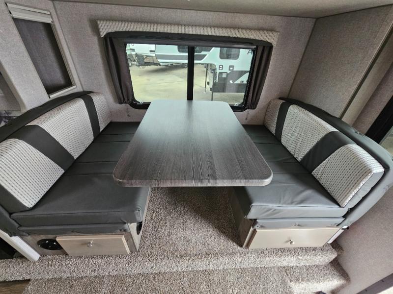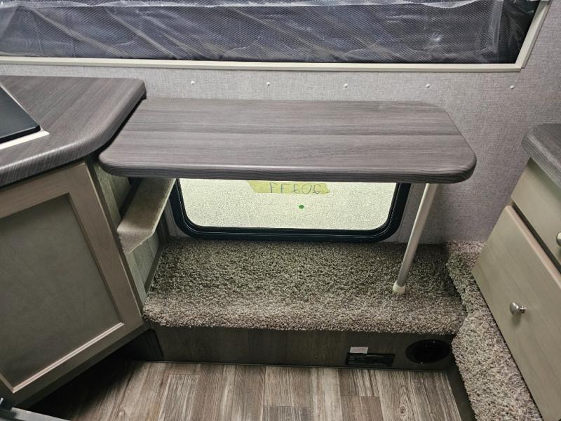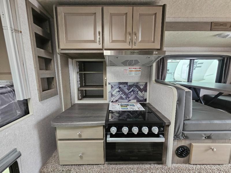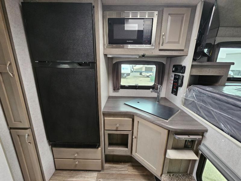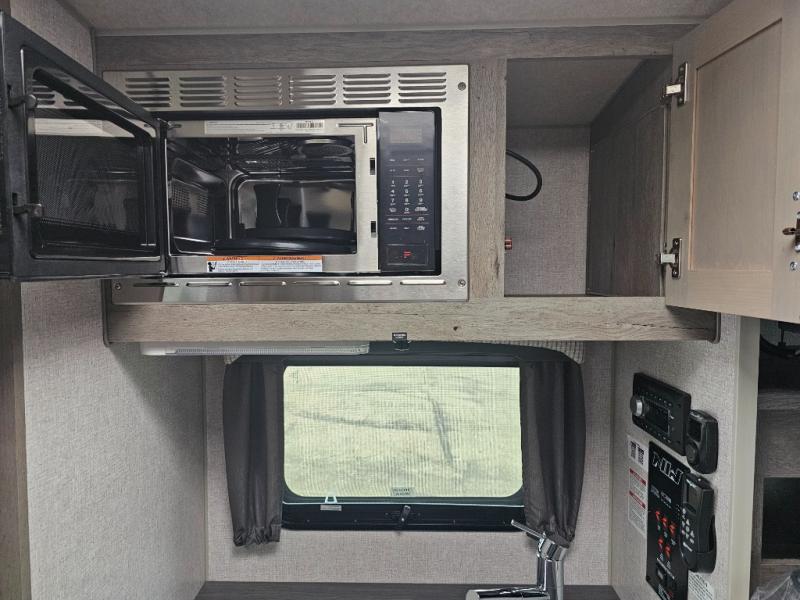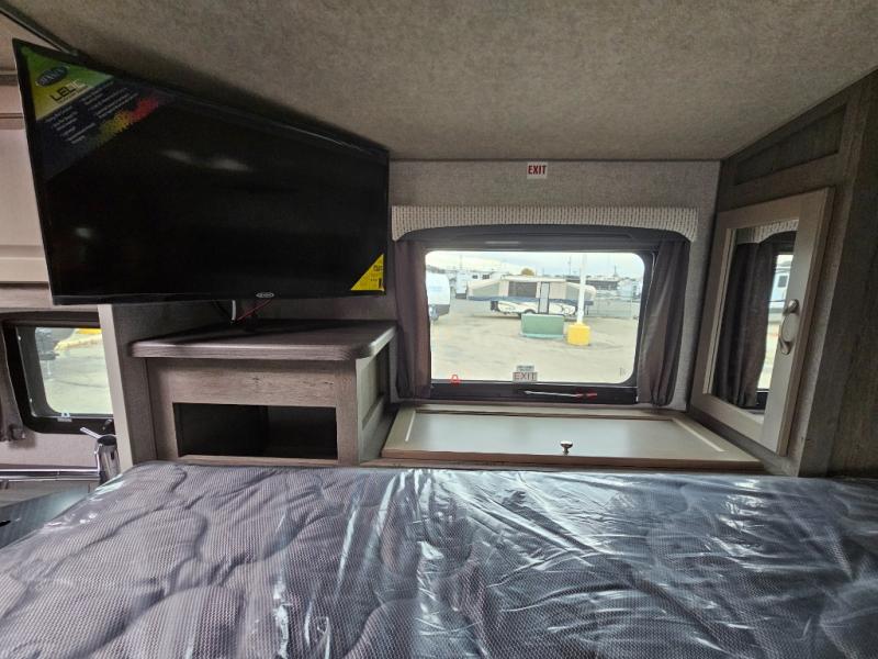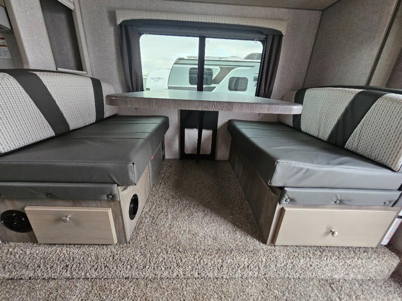 Get out and explore when you have this truck camper that allows you to easily setup camp with the electric jacks. Whether you hike around the campgrounds, fish the local pond or brought along your boat to fish on the lake, you can always return to your own NW TruRest queen mattress up front while you offer your friend or family member a space on the converted dinette that offers 42" x 76" of sleeping area. And there is a dry bath for you to get ready in. The cook will have three burner cooktop and microwave make meals, a 10 cu. ft. 12V refrigerator to store your cold items, and a pantry for dry goods. And you will find lots of wardrobes for clothing storage, two hampers for the dirty clothes, and overhead cabinets. You might even like to add the optional bunk above the dinette and there are more options to choose from to enhance this truck camper for your needs and wants.
