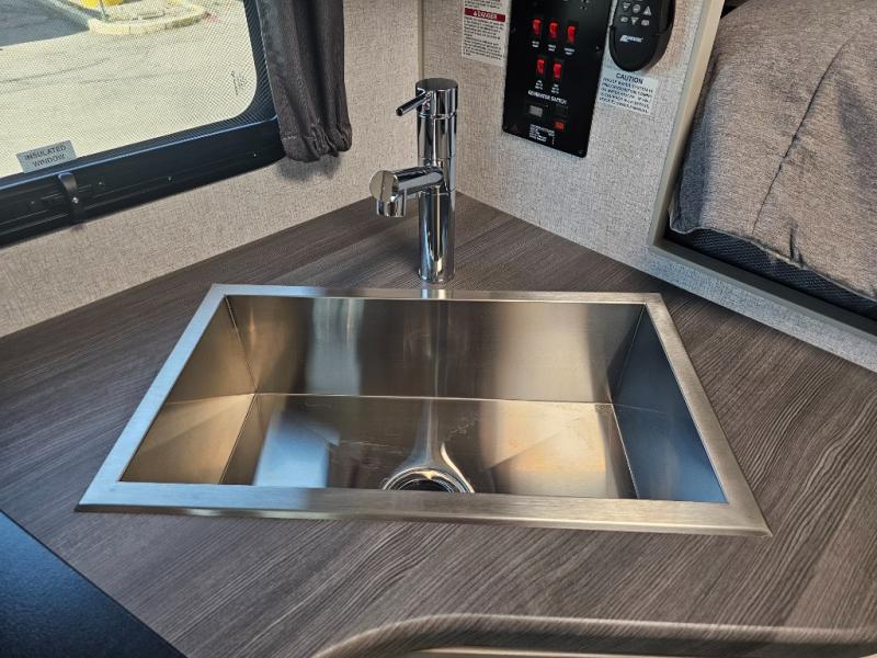 With any Arctic Fox truck camper by Northwood, there is a fully welded thick wall aluminum tube frame with solid core anchor blocking that gives substantial strength at the main connection points, and a heavy duty basement floor frame with joists that support the heated holding tanks under the basement. These 4 Season all weather campers allow you to camp where ever and whenever you decide to set up camp. The electric jacks with 6-function remote makes setting up easy, and the exterior shower allows you to keep the dirt outside. Inside you will find a cathedral arched ceiling for a spacious interior, solid wood cabinetry, a Dayliter kitchen skylight with shade to choose when you want more natural lighting inside, a porcelain, foot-pedal toilet and bath skylight, and roller bearing drawer guides.