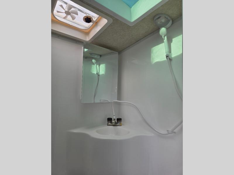 With any Arctic Fox truck camper by Northwood, there is a fully welded thick wall aluminum tube frame with solid core anchor blocking that gives substantial strength at the main connection points, and a heavy duty basement floor frame with joists that support the heated holding tanks under the basement. These 4 Season all weather campers allow you to camp where ever and whenever you decide to set up camp. The electric jacks with 6-function remote makes setting up easy, and the exterior shower allows you to keep the dirt outside. Inside you will find a cathedral arched ceiling for a spacious interior, solid wood cabinetry, a Dayliter kitchen skylight with shade to choose when you want more natural lighting inside, a porcelain, foot-pedal toilet and bath skylight, and roller bearing drawer guides.