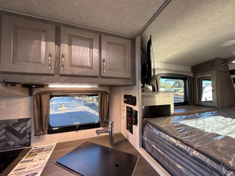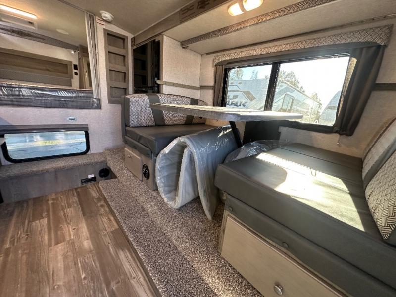 Camping with your own truck and maybe towing a fishing boat sounds pretty good, right? You can easily setup this truck camper and head out with your boat to return to comfortable accommodations as you relax at the campgrounds. You can sit at the dinette and you can convert this furniture into a 42" x 76" sleeping area. There is an optional bunk above if you might need more sleeping space for family and friends. Be sure to cook up your catch for the day using the three burner cooktop and microwave oven. The 58" x 80" NW TruRest queen mattress with a bedspread up front will allow you to get a good night's rest, and there is plenty of storage for your clothing and others' belongings with three wardrobes. And don't forget to put your dirty clothes in the hampers.