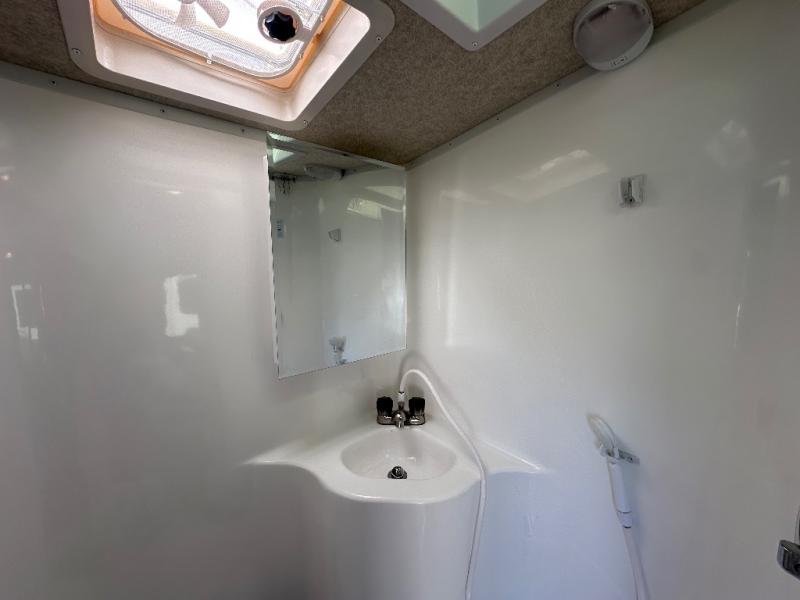 With any Arctic Fox truck camper by Northwood, there is a fully welded thick wall aluminum tube frame with solid core anchor blocking that gives substantial strength at the main connection points, and a heavy duty basement floor frame with joists that support the heated holding tanks under the basement. These 4 Season all weather campers allow you to camp where ever and whenever you decide to set up camp. The electric jacks with 6-function remote makes setting up easy, and the exterior shower allows you to keep the dirt outside. Inside you will find a cathedral arched ceiling for a spacious interior, solid wood cabinetry, a Dayliter kitchen skylight with shade to choose when you want more natural lighting inside, a porcelain, foot-pedal toilet and bath skylight, and roller bearing drawer guides.