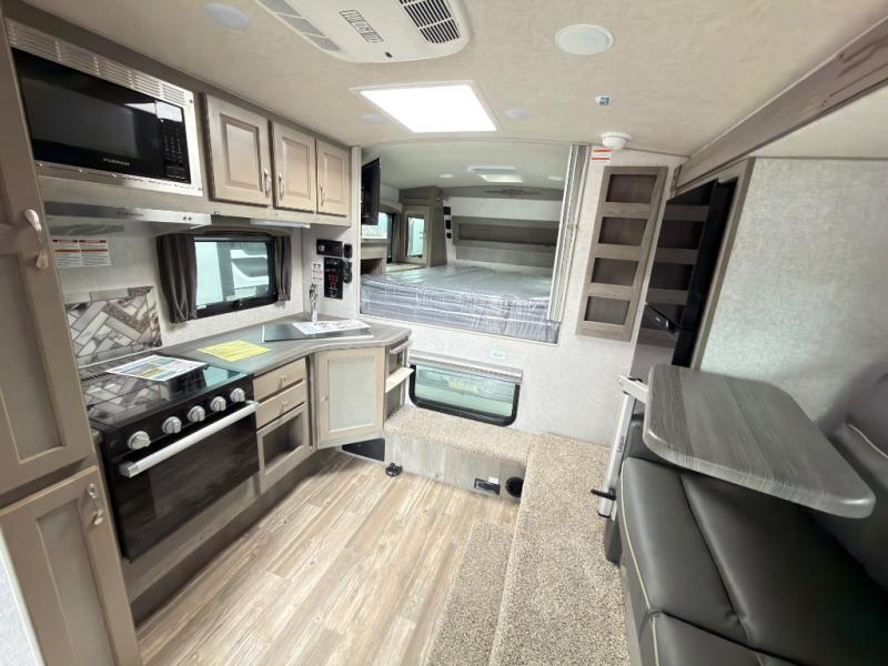 Camping with your own truck and maybe towing a fishing boat sounds pretty good, right? You can easily setup this truck camper and head out with your boat to return to comfortable accommodations as you relax at the campgrounds. You can sit at the dinette and you can convert this furniture into a 42" x 76" sleeping area. There is an optional bunk above if you might need more sleeping space for family and friends. Be sure to cook up your catch for the day using the three burner cooktop and microwave oven. The 58" x 80" NW TruRest queen mattress with a bedspread up front will allow you to get a good night's rest, and there is plenty of storage for your clothing and others' belongings with three wardrobes. And don't forget to put your dirty clothes in the hampers.
