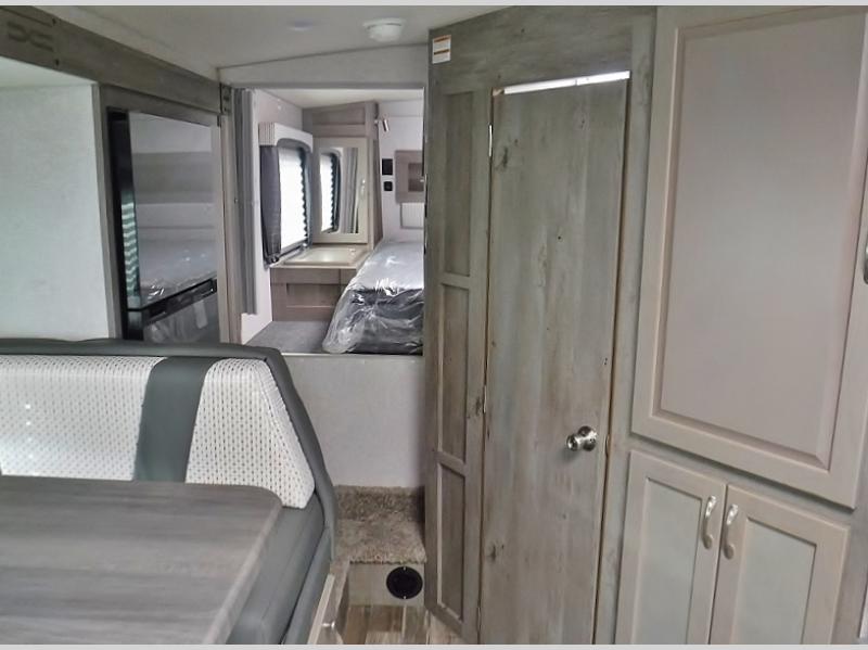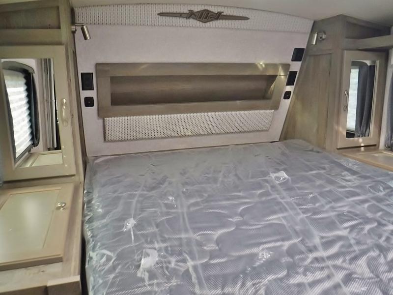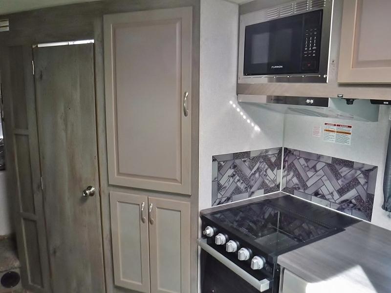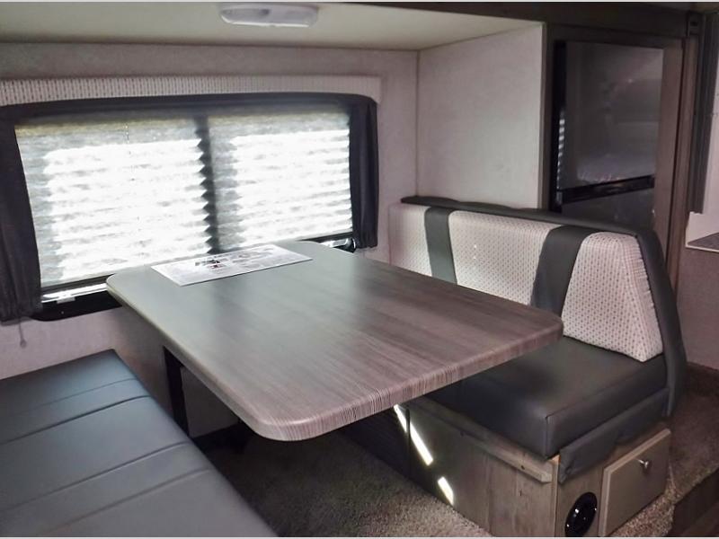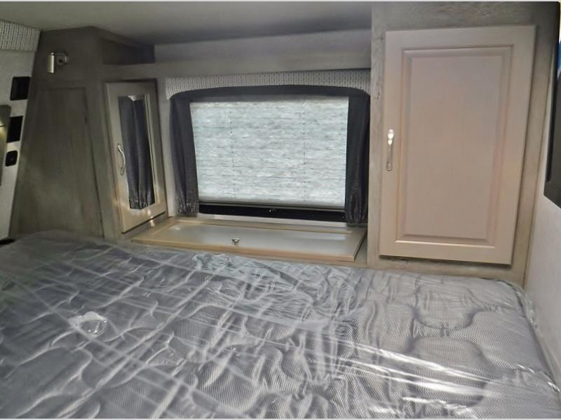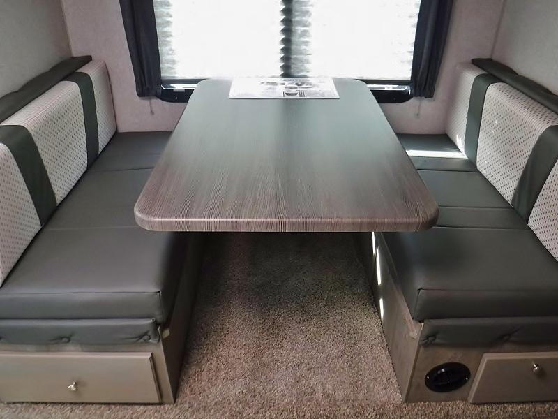 When you like to travel with your truck and your boat or trailer, this truck camper makes sense, plus gives you all the comforts you will need after a day on the water or playing around camp. The booth dinette, 12V refrigerator plus the pantry are within a slide giving you more floor space to move from the rear entry to the front bed where you can sleep like royalty on the NW TruRest mattress. There are three wardrobes and two hampers up front, and a space to add a TV option. Extra sleeping space is found on the converted dinette and you can add an optional bunk, plus you will find more storage in overhead cabinets and another wardrobe.