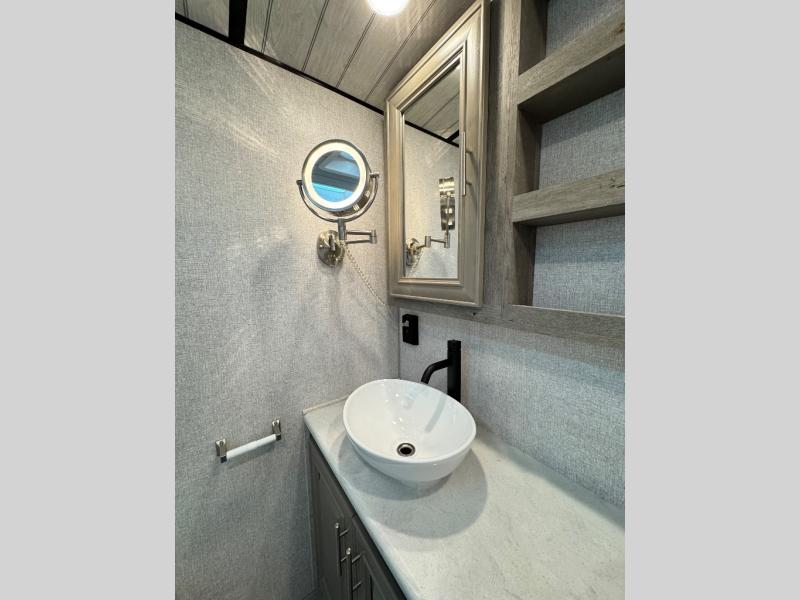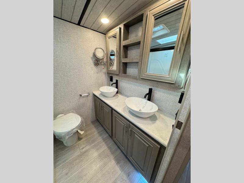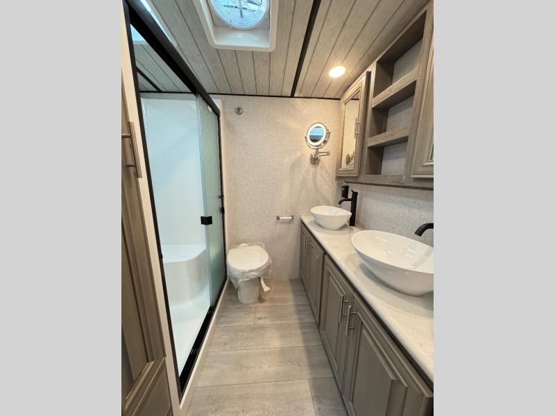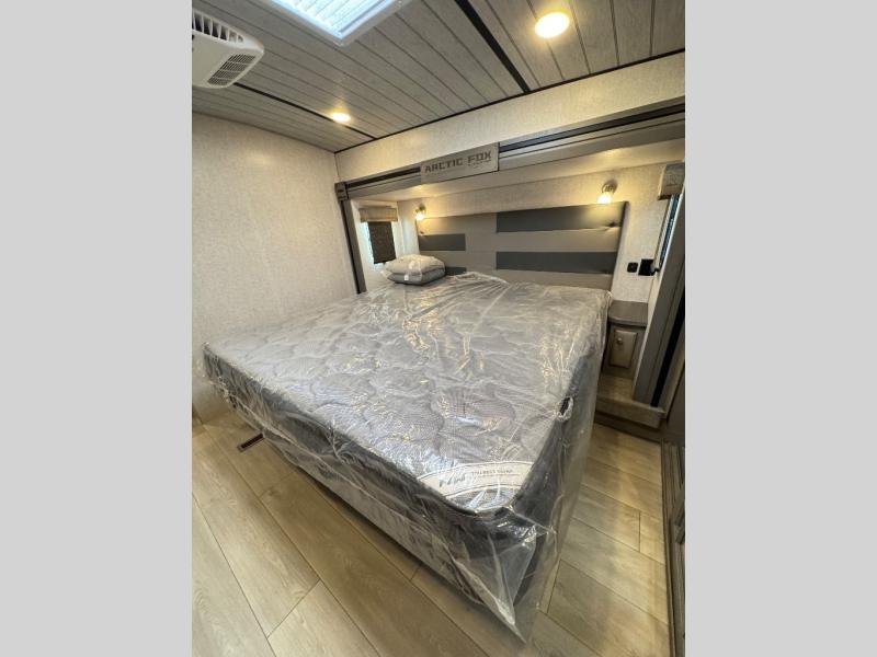 Each Northwood Arctic Fox Grande Ronde fifth wheel is built on a Northwood Ironhorse chassis with a wide-body floorplan and offers a true four-season RV with high density block foam insulation and heated holding tanks. The interior offers solid surface countertops, a glass shower enclosure, slow rise night shades, and an interior command center to easily access your units functions in one convenient location. Each fifth wheel also includes a TruRest mattress, USB ports on both sides of the bed, and a Starlite window with a shade to get a view of the stars! There is an exterior shower outside, along with a SolX 4 - 400 watt solar package, slam latch luggage doors, an exterior convenience center, and many more amenities!