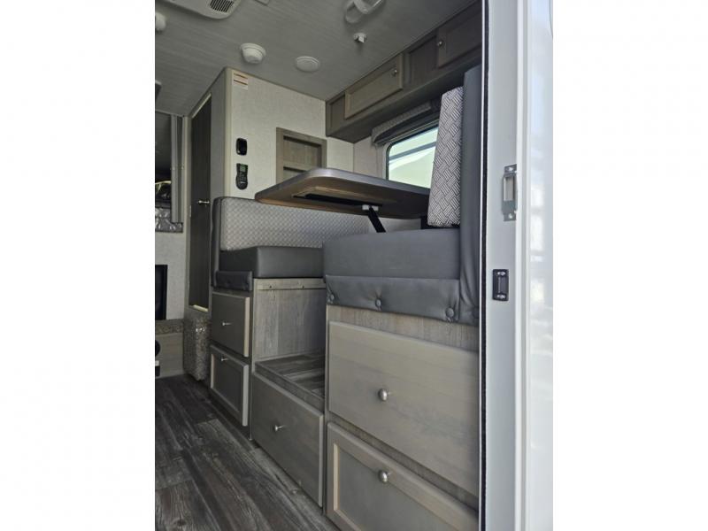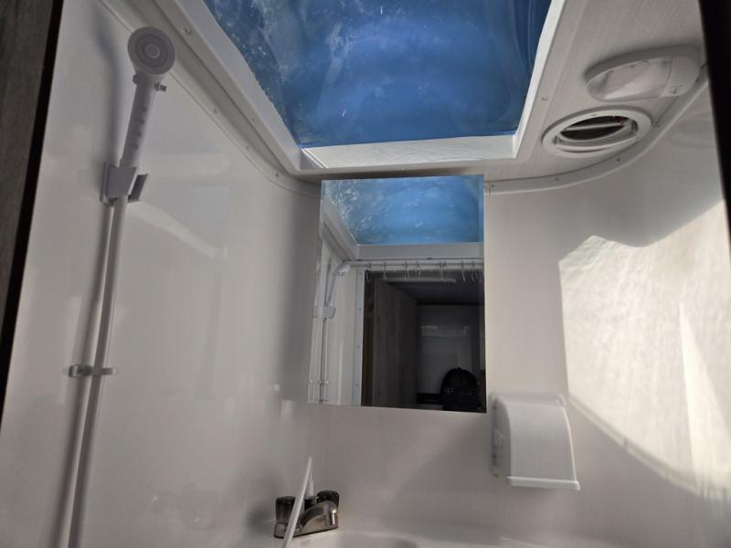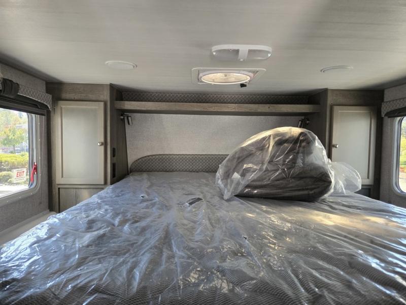 Make your weekend excursions easier than ever in this cozy truck camper for three to four. Since there is a 58" x 80" queen bed up front, you won't have to sleep on the floor, and your guests can sleep on the booth dinette that converts to a 40" x 72" sleeping area. Get cleaned up each day in the convenient wet bath that includes a medicine cabinet and an exhaust fan to keep everything fresh. There is a three burner cooktop and residential-style microwave with an air fryer to prepare meals each day, plus an 8 cu. ft. 12V refrigerator for perishables. This model also includes three wardrobes around the bed for more storage place plus a TV location if you want to add the optional 24" 12V LED TV!