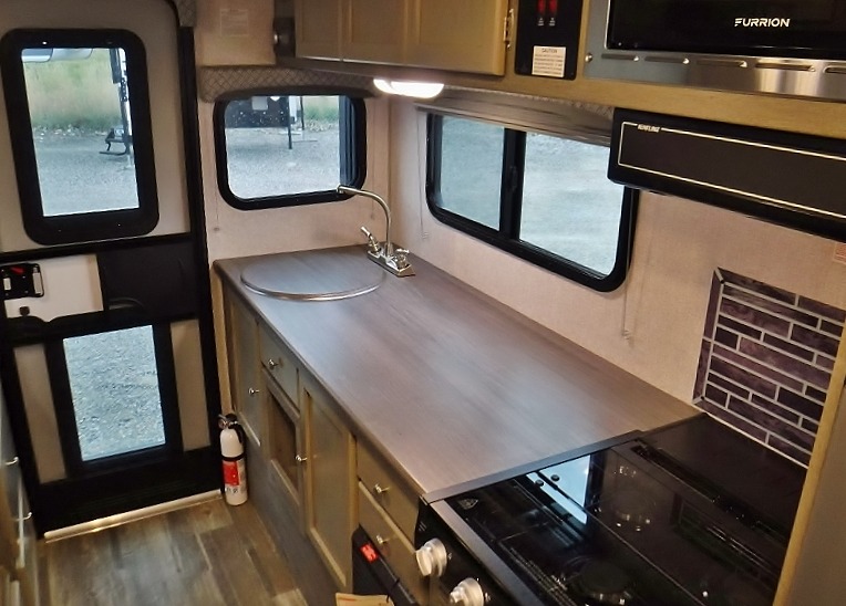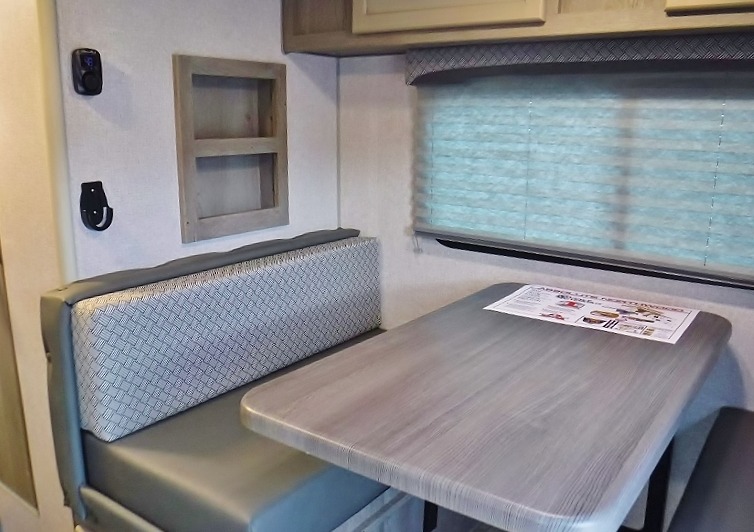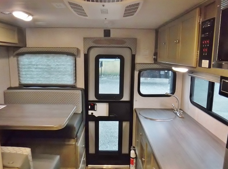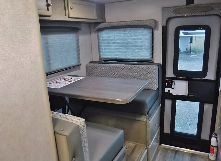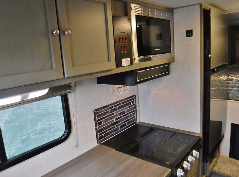 Make your weekend excursions easier than ever in this cozy truck camper for three to four. Since there is a 58" x 80" queen bed up front, you won't have to sleep on the floor, and your guests can sleep on the booth dinette that converts to a 40" x 72" sleeping area. Get cleaned up each day in the convenient wet bath that includes a medicine cabinet and an exhaust fan to keep everything fresh. There is a three burner cooktop and residential-style microwave with an air fryer to prepare meals each day, plus an 8 cu. ft. 12V refrigerator for perishables. This model also includes three wardrobes around the bed for more storage place plus a TV location if you want to add the optional 24" 12V LED TV!