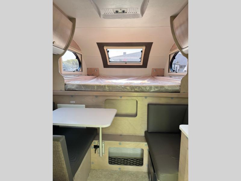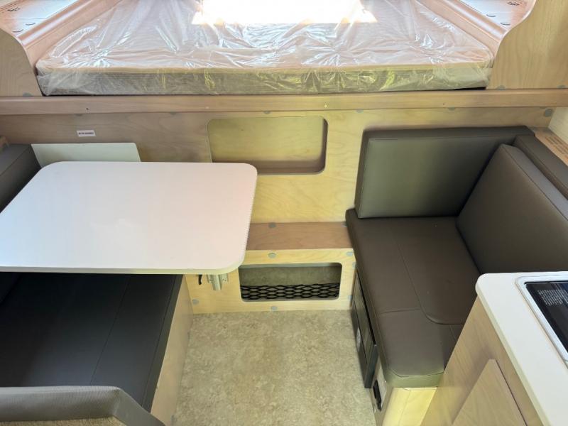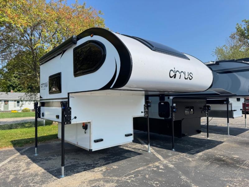 This Cirrus truck camper comes with a Froli sleep system which is a unique and innovative approach to a comfortable night of sleep. While you're sleeping on the bed, you can look through the stargazer window to appreciate the night sky. The dinette can easily be transformed into a second bed, and the sink, two-burner stove, and 4.6 cu. ft. 12V compressor refrigerator give you a place to prepare meals. This model also comes with an external LP hook-up, a Nautilus Water Management System, an exterior shower, and a dual battery compartment.