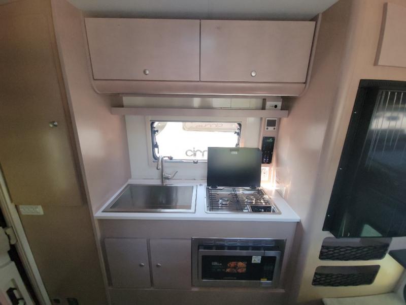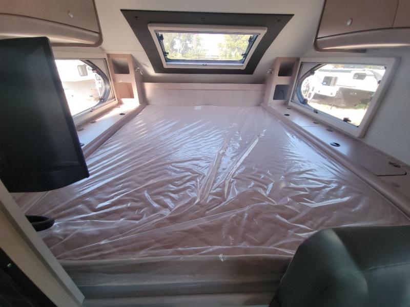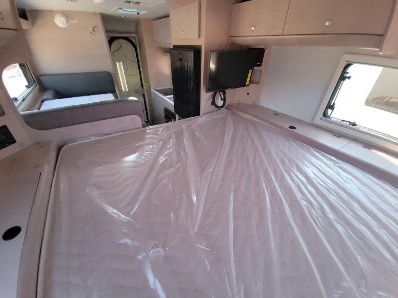 You will find a pass-thru window on this Cirrus truck camper. The exterior has a Maggie roof rack for bringing along extra gear, and there is a motorized 120" side awning to protect you while you're living life outside. The convection microwave/oven is going to make your meal prep easier and faster, and the air conditioning will keep this camper's interior at a desirable temperature even when it's hot outside. This model also comes with a Bluetooth media center with 19" TV and a great sleeping area with the Froli sleep system.