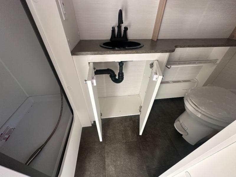 With any Haven travel trailer by nuCamp RV, you can make each destination your home on the road sanctuary! Handcrafted in Ohio's Amish country, you will be pleased with the impeccable craftsmanship and functionality. The Convenience Package features an electric tongue jack with a courtesy light, a roof top solar panel, an external solar port, a backup camera, and a 100Ah 12V lithium battery to keep you powered up. Each model also includes an external LP hook-up, a rear hitch receiver, an XL storage tub, plus an entry door handle and double step for added stability when entering the unit. Inside, you'll enjoy premium soft-close cabinetry, Stargazer windows, composite flooring, and a 24" wide entry door with an integrated screen door to name just a few comforts!