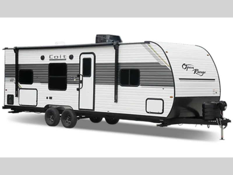 With any Colt travel trailer by Open Range RV, you can be sure you're getting a budget-friendly unit designed to fit your lifestyle! Each one is built to last with a PVC roofing membrane and built-in A-frame, plus there are nitrogen-filled radial tires and self-adjusting electric brakes for easy towing. You will appreciate the utilities that include 30-amp service, an A/C unit, and an on-demand tankless water heater. A few interior comforts include vinyl flooring throughout, solid hardwood cabinet doors, and residential grade kitchen countertops to make your space feel more like home. There are additional features available, depending on the edition you choose, along with available options to further customize your Colt travel trailer!