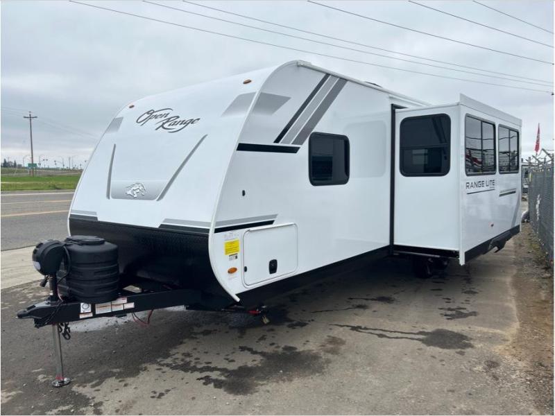 With any Range Lite travel trailer by Open Range RV, you will enjoy comfort and convenience at every turn! Each one is built with vacuum bonded sidewalls with interior and exterior Azdel, a 2" TuffShell floor, and front diamond plating to help protect against rock and debris on the way to the campground. The Xtend l Solar Package includes a 200-watt solar panel with a 30-amp solar controller for off-grid capabilities, and you're sure to appreciate the tankless water heater onboard for endless hot showers. Head inside to enjoy residential cabinetry with large doors and drawers, roller shades with radiant barrier backer, Invision kitchen appliance package, and many more comforts! Choose the optional Legacy Package for a molded front cap, 5-point power stabilization system, solid surface countertops, and more optional features to further customize your travel trailer!