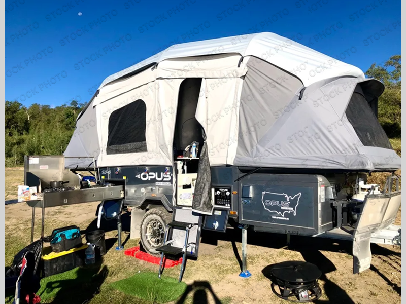 The Opus Camper OPUS folding pop-up camper is created for adventure! An all-terrain chassis, off-road tires, and independent coil suspension allow you to go wherever you want to go. The compact design makes it easy to take the OPUS down back roads and beaten paths, but once you settle on a destination, the OPUS opens up into an accommodating base camp for you and your fellow travelers. As you travel, you'll find that the extra storage components will be extremely useful.