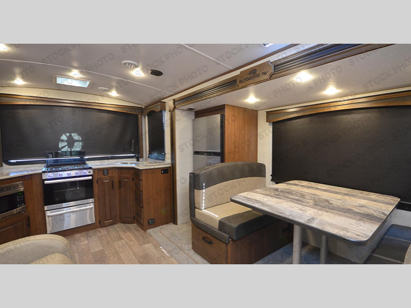 With any Timber Ridge Titanium Series travel trailer by Outdoors RV you will enjoy the sleek design frameless thermal pane windows, along with the silver fiberglass front cap and Titanium Series graphics package. The rugged 8' chassis with 5,100 lb. axles and XL ground clearance will make maneuvering tougher terrain easier than ever, and there is a wireless rear, side(s) turn camera system for hassle-free parking. Each model includes LG solid surface countertops, mountain lodge interiors, hardwood slide out fascia(s), and many more comforts!