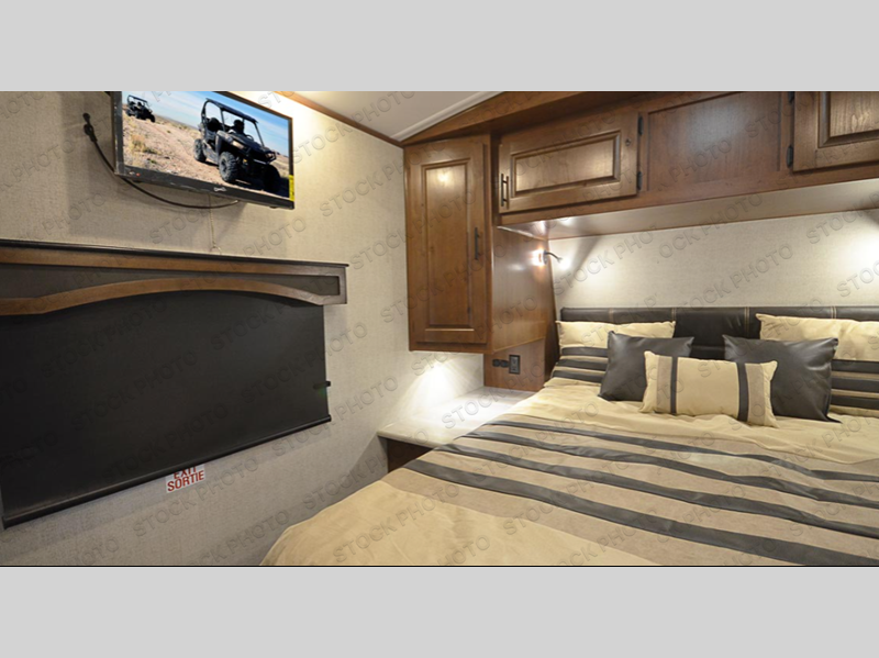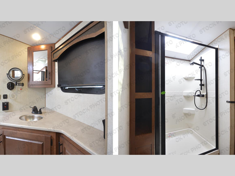 Pack your bags and escape the city life for weekend camping trips in this dual entry travel trailer. When you arrive at the campsite, take a hike to stretch your legs, then come back to prepare lunch on the three burner cooktop. You'll find plenty of counter space in the kitchen, plus a 10 cu. ft. refrigerator for cold drinks and perishables. The dual lounge chairs will have you feeling right at home, or you can choose the optional sofa with built-in recliners, or the optional sleeper sofa if you need more sleeping space. This model includes a walk-through bath that is both spacious and convenient since it leads to to the front master bedroom. You can't beat a queen bed, dual bedroom wardrobes, and your own exterior entry door!