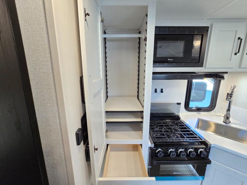 Pack up your fishing gear and load this hard side truck camper onto your truck! Start your mornings feeling recharged after sleeping on the front queen bed with a wrap around nightstand, chests on either side, and a wardrobe to keep your shirts wrinkle-free. You'll also enjoy the entertainment center with a TV on this model to watch your favorite shows in bed. The kitchen has everything you need to prepare your best meals including two pantries, one of which is a wardrobe/pantry for double use. The sofa with a table offers a comfortable place to enjoy your meals, as well as transform into an extra sleeping space.