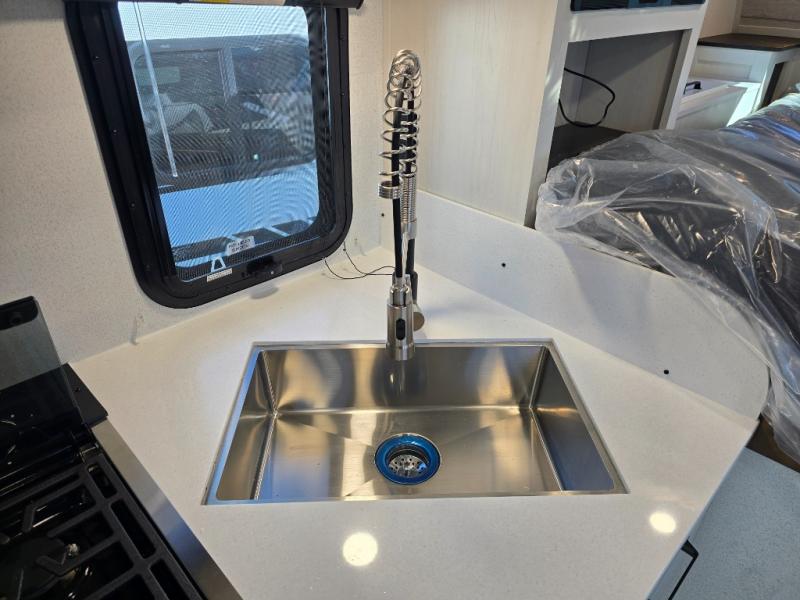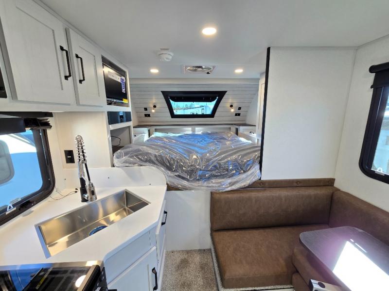 Each Backpack Edition truck camper by Palomino is constructed with high-density block foam insulation, an alpha super flex membrane roof, and Azdel substrate for added durability. You will also love the white or grey hi-gloss exterior fiberglass that is eye-catching and easy to keep clean. Inside, you'll find solid surface countertops, white cabinets, an undermount sink, and more comforts. The 200-watts of solar power and 100 Amp lithium battery will keep you powered up, and the electric jacks will have you set up at camp in no-time!