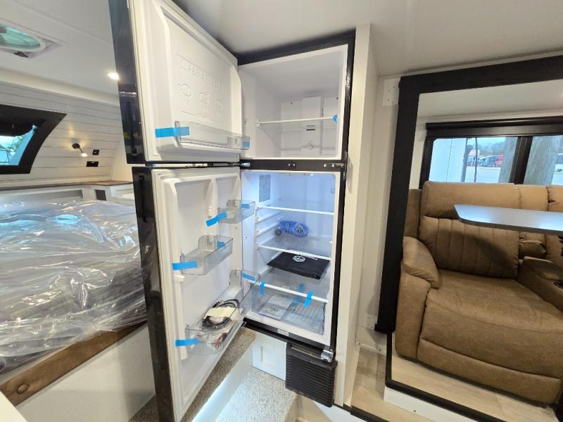 You will love all of the extra space provided in this hard side truck camper with the 40" x 62" booth dinette slide! If you're not needing the additional sleeping space provided by the dinette, choose the optional theater seating! Prepare your best meals with the cooktop, store your canned goods in the wardrobe/pantry, and and leftovers in the refrigerator, plus there is a microwave to pop a bag of popcorn at night. After a fun day of fishing, freshen up in the wet bath and relax on the front queen bed with a wrap around night stand, chests on either side, and an entertainment center. There is even a closet to keep clothes wrinkle-free!