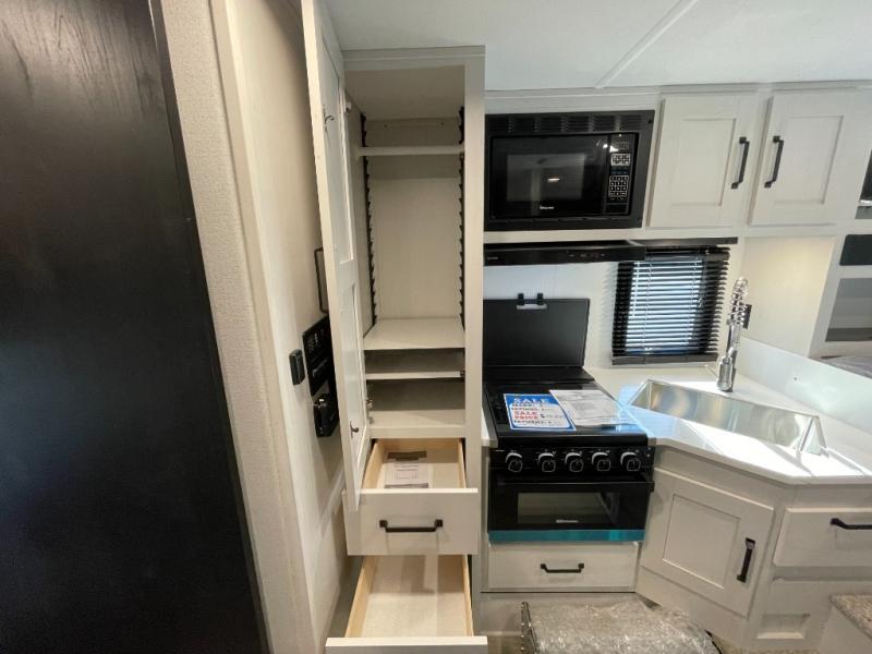 You will love all of the extra space provided in this hard side truck camper with the 40" x 62" booth dinette slide! If you're not needing the additional sleeping space provided by the dinette, choose the optional theater seating! Prepare your best meals with the cooktop, store your canned goods in the wardrobe/pantry, and and leftovers in the refrigerator, plus there is a microwave to pop a bag of popcorn at night. After a fun day of fishing, freshen up in the wet bath and relax on the front queen bed with a wrap around night stand, chests on either side, and an entertainment center. There is even a closet to keep clothes wrinkle-free!