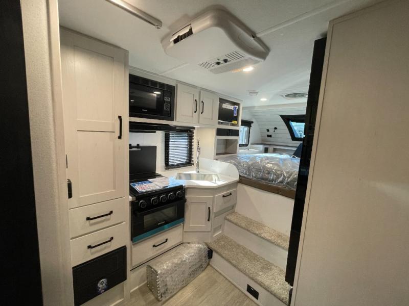 Each Backpack Edition truck camper by Palomino is constructed with high-density block foam insulation, an alpha super flex membrane roof, and Azdel substrate for added durability. You will also love the white or grey hi-gloss exterior fiberglass that is eye-catching and easy to keep clean. Inside, you'll find solid surface countertops, white cabinets, an undermount sink, and more comforts. The 400-watts of solar power and 100 Amp lithium battery will keep you powered up, and the electric jacks will have you set up at camp in no-time!