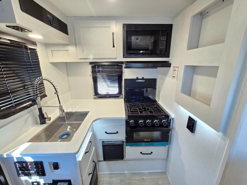 Each Backpack Edition truck camper by Palomino is constructed with high-density block foam insulation, an alpha super flex membrane roof, and Azdel substrate for added durability. You will also love the white or grey hi-gloss exterior fiberglass that is eye-catching and easy to keep clean. Inside, you'll find solid surface countertops, white cabinets, an undermount sink, and more comforts. The 400-watts of solar power and 100 Amp lithium battery will keep you powered up, and the electric jacks will have you set up at camp in no-time!
