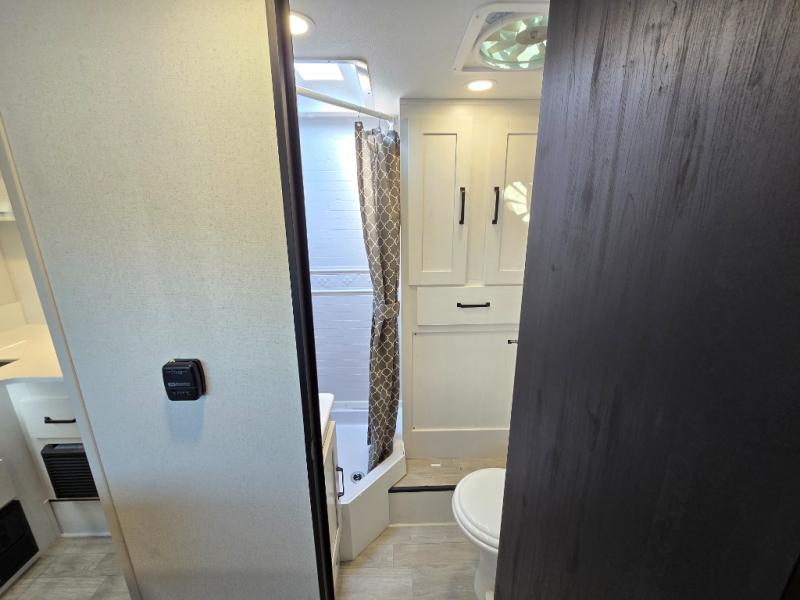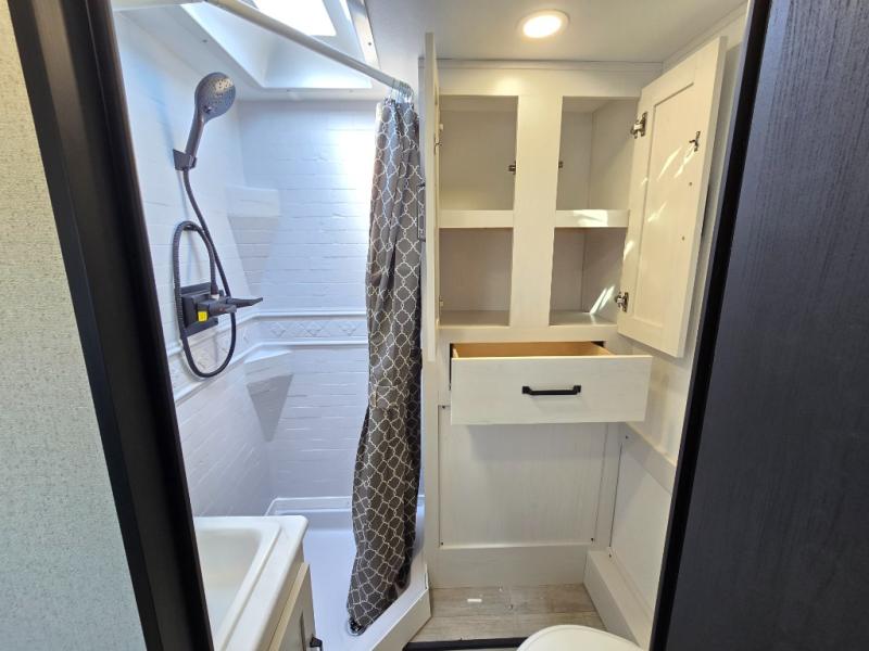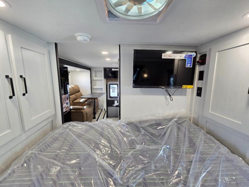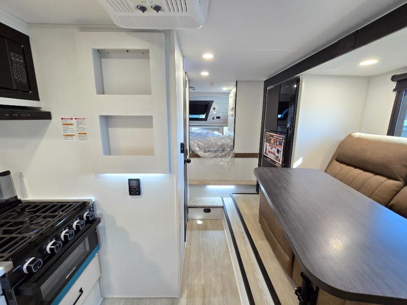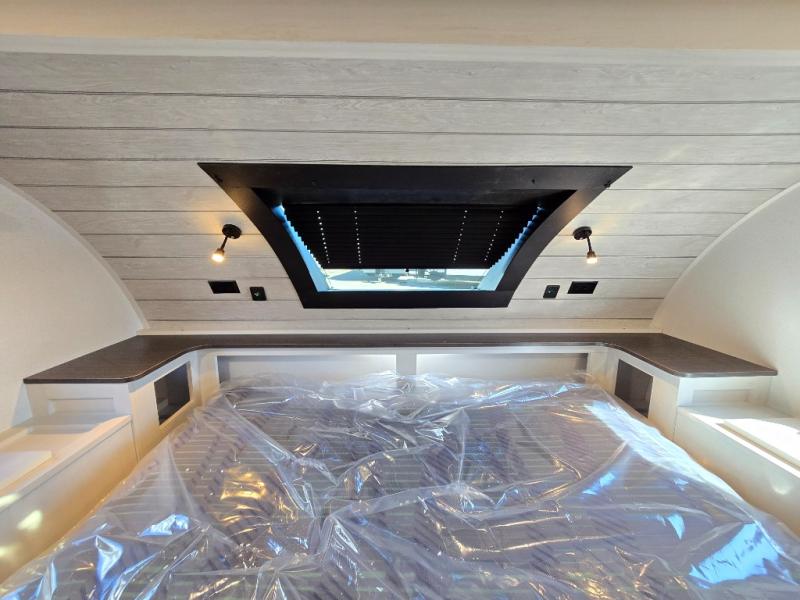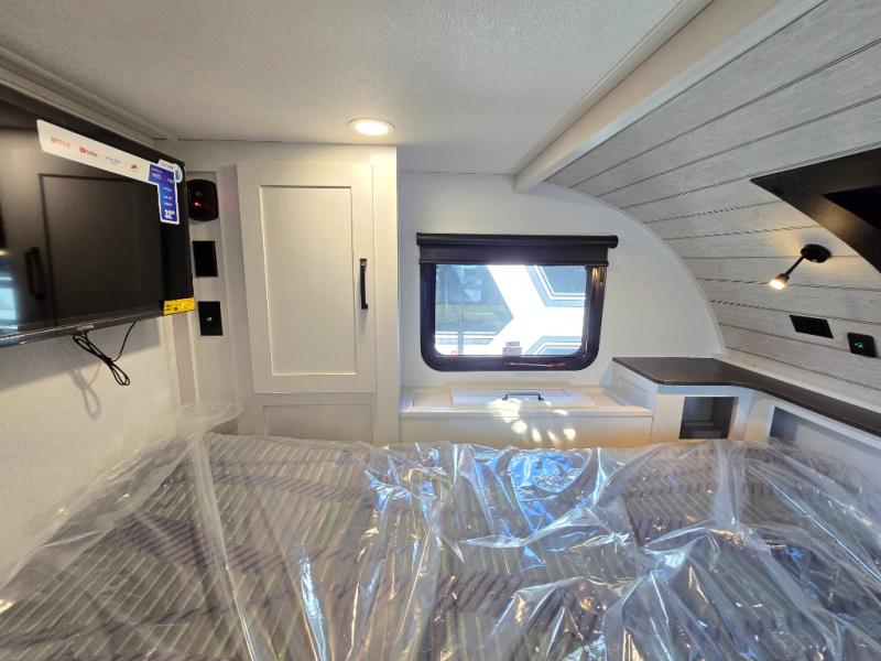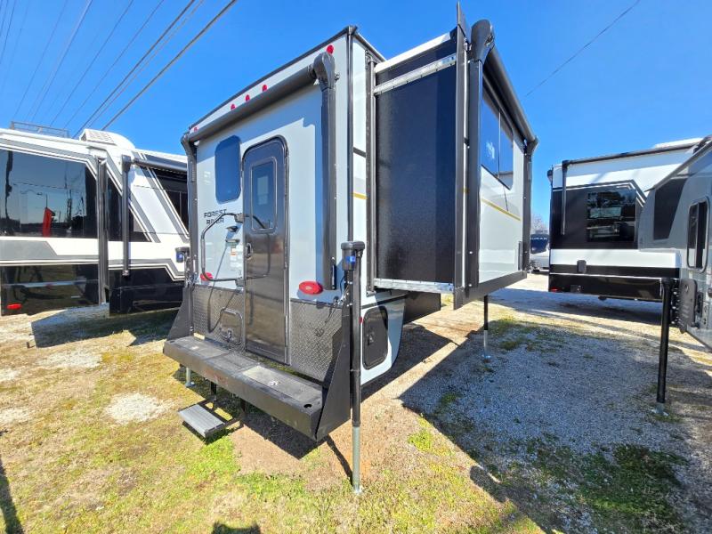 You will love how much space you have inside this truck camper with a booth dinette slide that also houses the refrigerator. Not many truck campers include a dry bath, but this one does, and it's sure to make you feel more at home. There is even a bath linen closet to keep towels close by. The rear corner kitchen includes a microwave oven and a sink cover for more prep space, and the overhead cabinets can hold spices and snacks. When you're ready to catch some zzz's, the front queen-size bed is sure to provide a great night's rest. There is also a wrap-around nightstand, two storage chests, and two closets so everything can stay tidy! This unit also includes the Deluxe Package with two 32" TVs plus rear and side awnings!