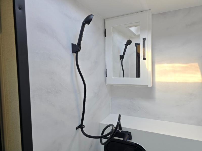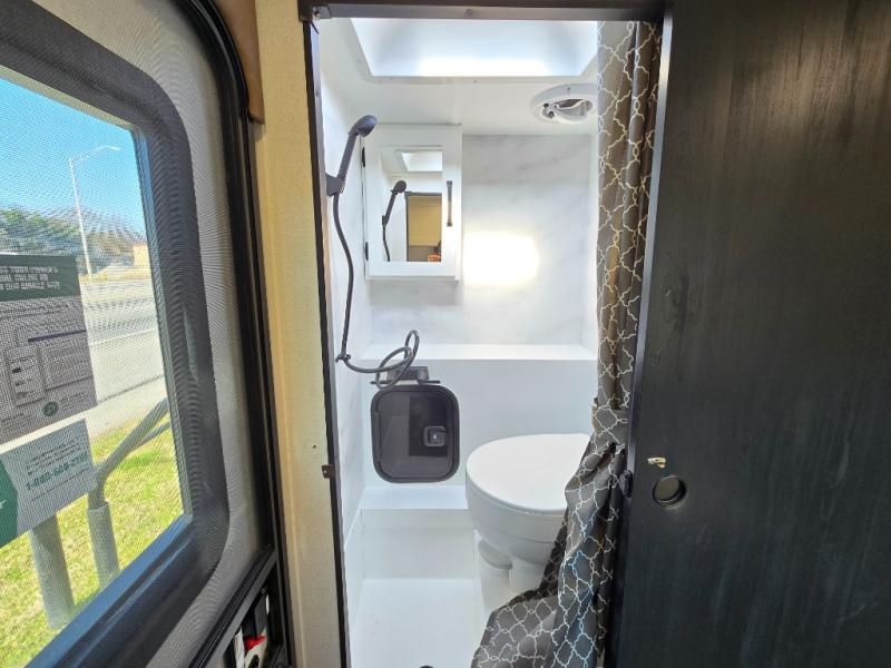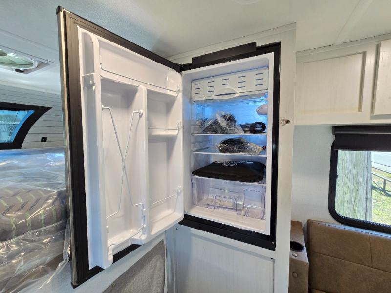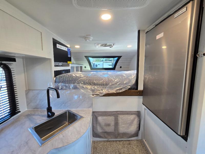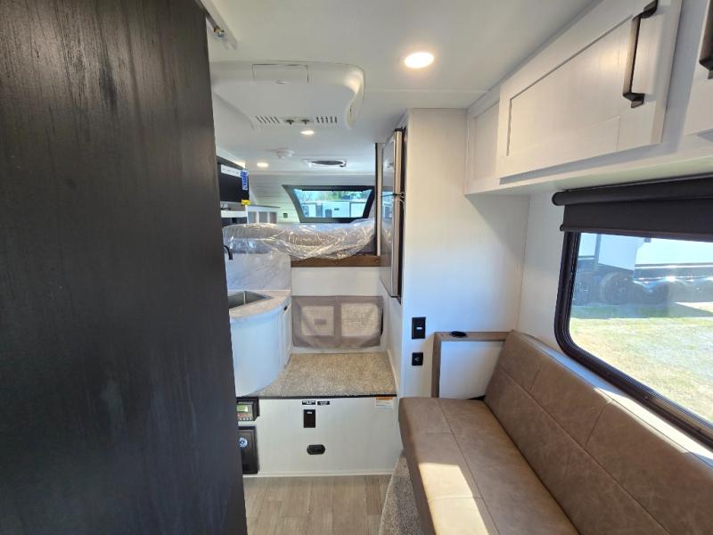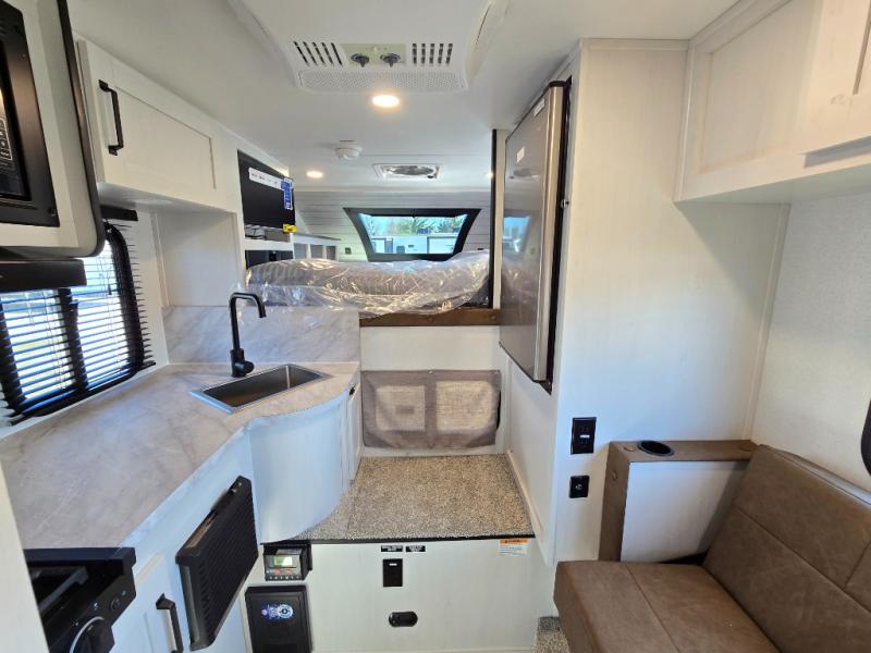 You will have everything you need for a comfortable trip in this hard side truck camper! There is a front queen bed to lay your head on at night with storage next to it and an entertainment center if you choose to add the optional TV. Above the two burner cooktop and sink are overhead cabinets to store your cooking essentials. The 60" x 22" jackknife sofa is not only a comfortable place to enjoy your meals, but also for transforming into an extra sleeping space, plus it has overhead cabinets to store your games. You even have a wet bath to freshen up in each morning!