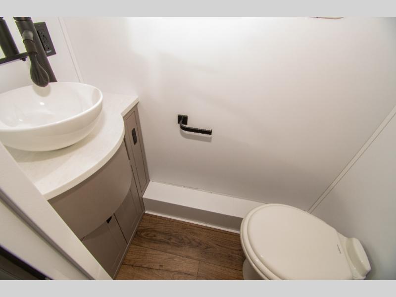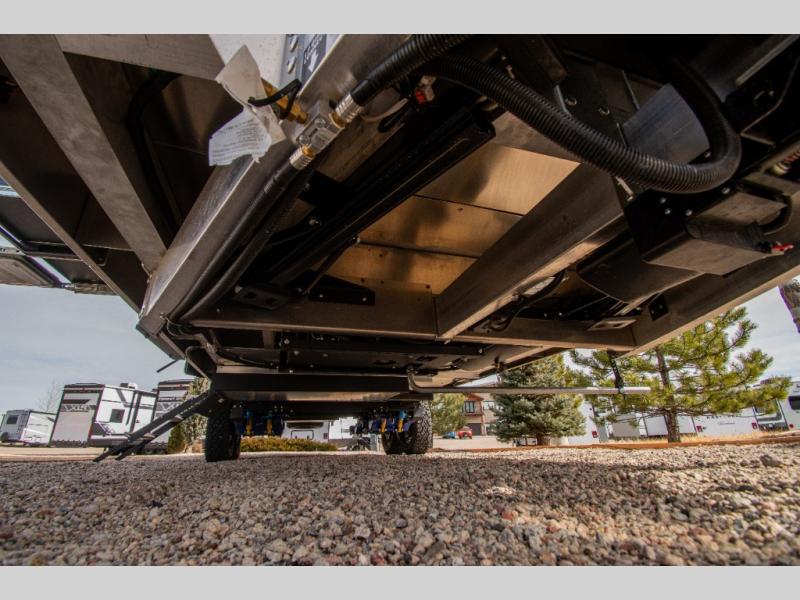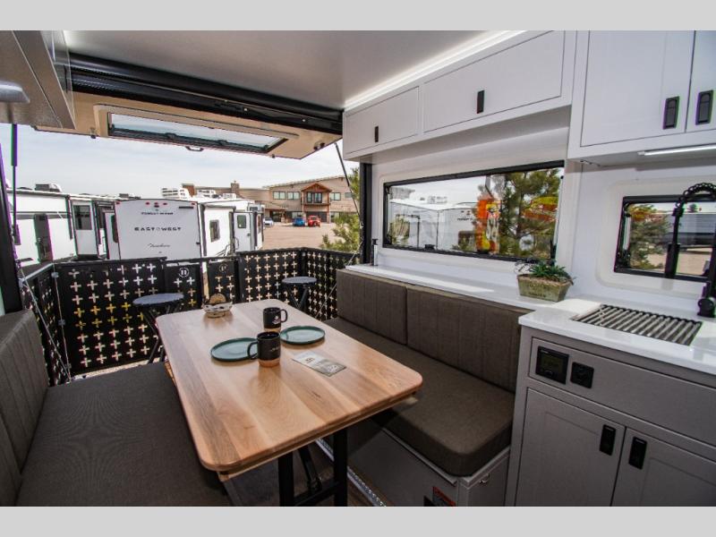 Every Palomino Pause X model is built to take you off-road and off-grid, ready for any adventure. These trailers are packed with features for both comfort and convenience. The suspension system can be controlled from inside your vehicle using a Garmin tablet or app, allowing you to raise, kneel, or level the trailer to help with camp set up. Integrated internal and external jounce bumpers provide added security, letting you travel safely even without air in emergencies. Inside, you will still be comfortable with solid surface countertops, a residential-style porcelain foot-flush toilet, and durable aluminum cabinets. Rugged on the outside, comfortable on the inside!