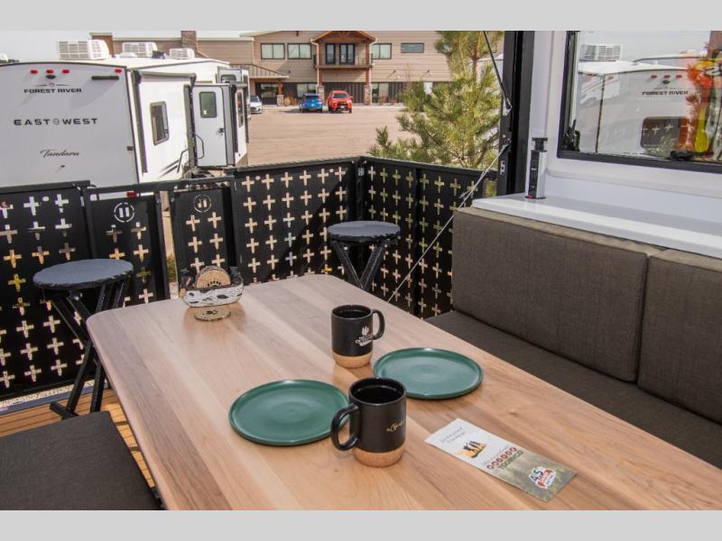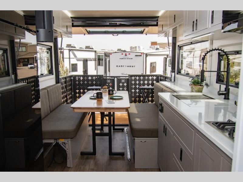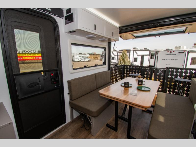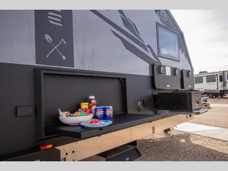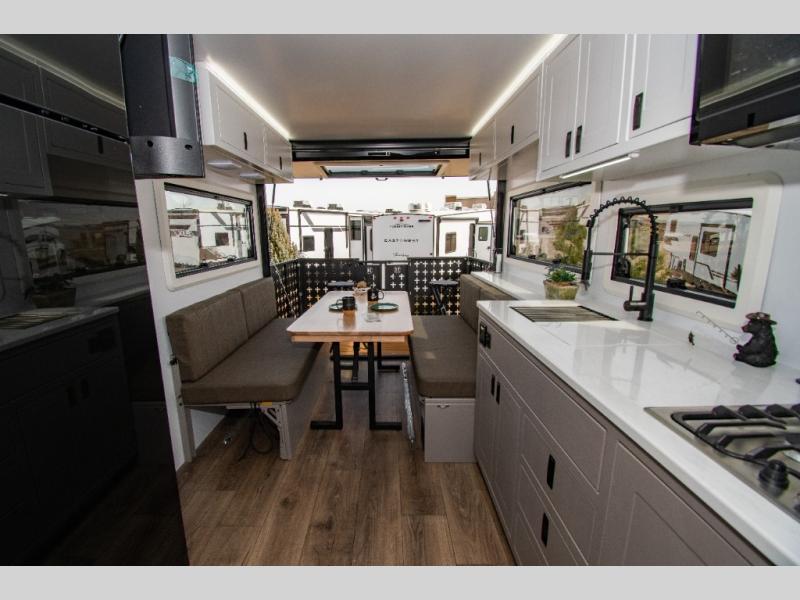 With this off-road trailer Palomino Pause X, you’ll enjoy the comfort of modern amenities while exploring off the grid. This 22.4 model features a versatile rear dinette that can convert into a bed for extra sleeping space, a bar for entertaining, or fold flat against the wall to provide more living space. The kitchen comes well-equipped with a three-burner gas cooktop, a 10.6 cu. ft. black glass refrigerator, and a convection microwave oven. At the front, you’ll find two 33" x 80" twin beds along each wall for separate sleeping spaces or, if you prefer, you can opt for a spacious 72" x 80" king-size bed instead.
