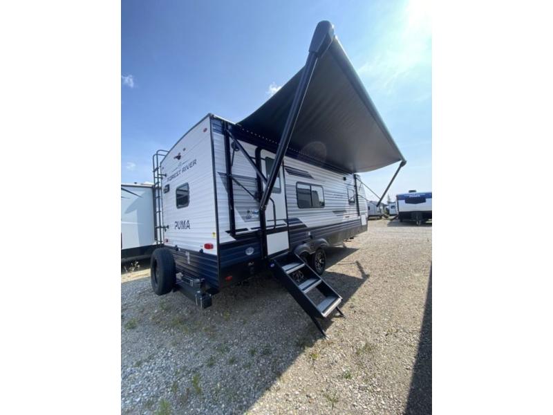 If you're looking for family-fun adventures then you need one of these Palomino Puma fifth wheels or travel trailers! They are built rugged, easy to tow, and jam packed with features. The Darco wrapped underbelly will protect your units vitals and the AlphaPly roofing membrane covers it. They also have new aluminum wheels and a powder coated steel I-beam frame. Inside, the Congoleum linoleum will be easy to keep clean, and the night roller shades will provide privacy when it's time to turn in. You'll also enjoy an electric awning with an LED light strip plus an AM/FM/Bluetooth stereo and two outside speakers to keep the party going!