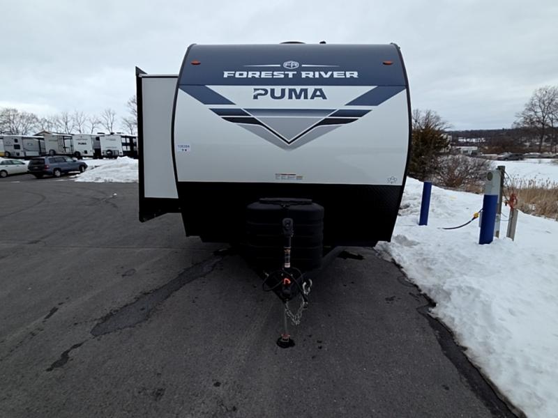 If you're looking for family-fun adventures then you need one of these Palomino Puma fifth wheels or travel trailers! They are built rugged, easy to tow, and jam packed with features. The Darco wrapped underbelly will protect your units vitals and the AlphaPly roofing membrane covers it. They also have new aluminum wheels and a powder coated steel I-beam frame. Inside, the Congoleum linoleum will be easy to keep clean, and the night roller shades will provide privacy when it's time to turn in. You'll also enjoy an electric awning with an LED light strip plus an AM/FM/Bluetooth stereo and two outside speakers to keep the party going!