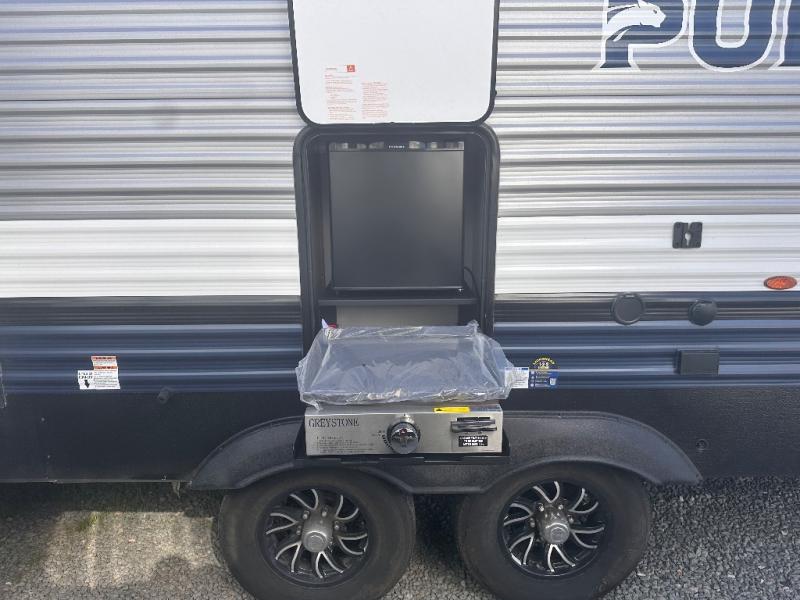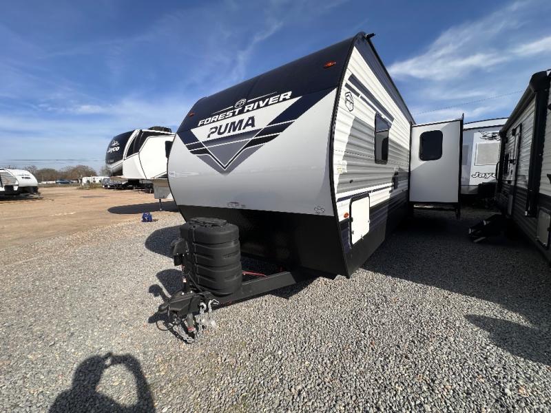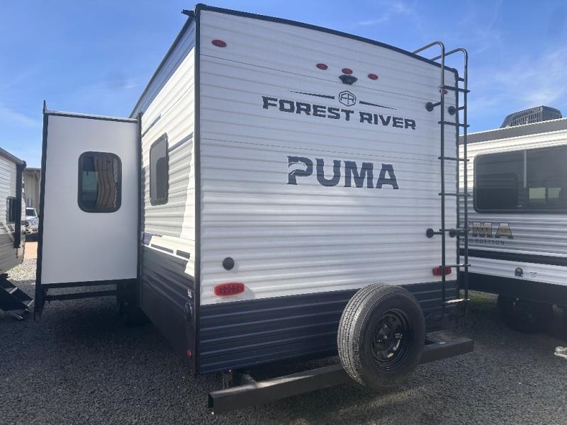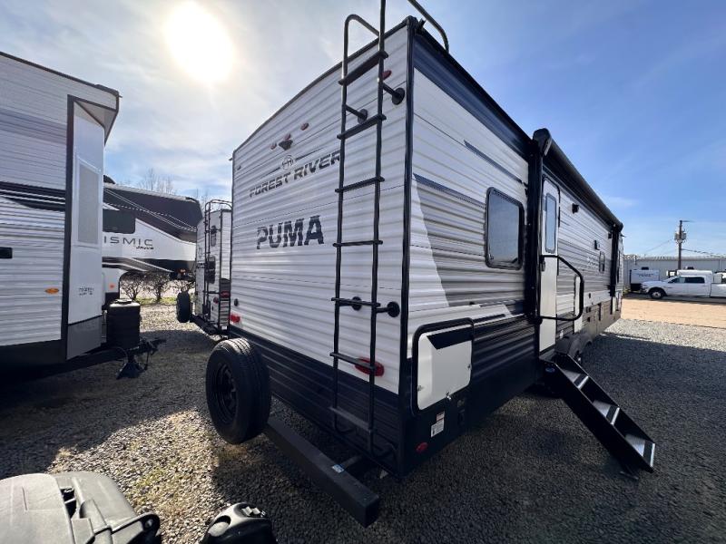 If you're looking for family-fun adventures then you need one of these Palomino Puma fifth wheels or travel trailers! They are built rugged, easy to tow, and jam packed with features. The Darco wrapped underbelly will protect your units vitals and the AlphaPly roofing membrane covers it. They also have new aluminum wheels and a powder coated steel I-beam frame. Inside, the Congoleum linoleum will be easy to keep clean, and the night roller shades will provide privacy when it's time to turn in. You'll also enjoy an electric awning with an LED light strip plus an AM/FM/Bluetooth stereo and two outside speakers to keep the party going!