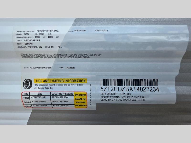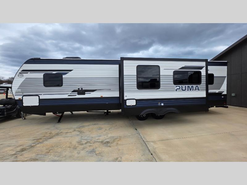 If you're looking for family-fun adventures, then you need one of these Forest River Puma travel trailers! They are built rugged, easy to tow, and jam packed with features. The Darco wrapped underbelly will help protect your unit, and the roof and side mount solar prep gives you the option to add off-grid power. Inside, the Congoleum linoleum will be easy to keep clean, and the night roller shades will provide privacy when it's time to turn in. You'll also enjoy an electric awning with an LED light strip plus an AM/FM/Bluetooth stereo and two outside speakers to keep the party going!