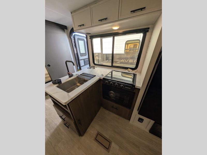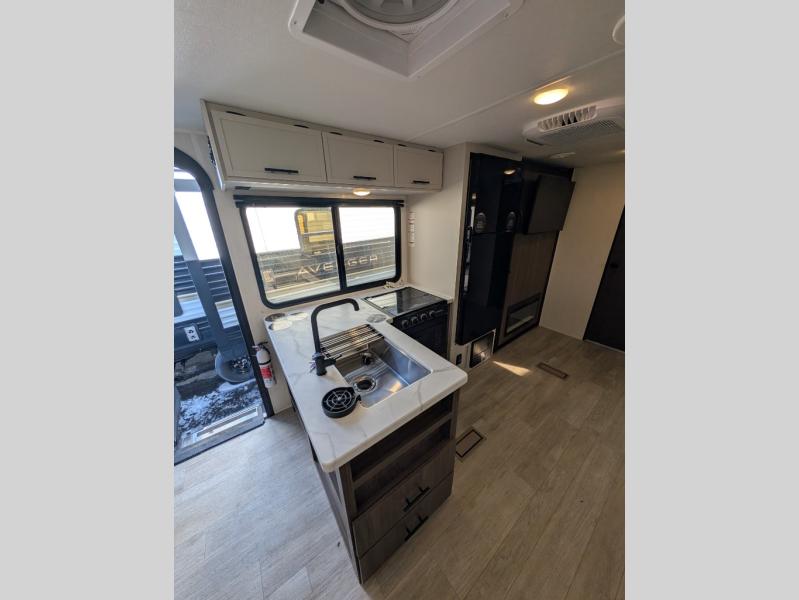With any Avenger travel trailer by Prime Time RV, you will find innovation, a solid build, and comfort at every turn. Each model is built with Tuff Coat on the exterior metal, a fully enclosed underbelly, and a PVC roof membrane to help extend the life of your trailer. You will also find automotive name badging on the exterior, along with an exterior shower, front rail LED light strips, plus an XL padded entry grab handle to name a few conveniences. There are plenty of storage spaces inside, as well as Congoleum flooring and woven PVC marine grade slide out flooring, a designer shower surround, and seamless pressed countertops. You are sure to appreciate the onboard water filtration system, tankless water heater, plus 30K BTU furnace and 15K ducted A/C to help keep you comfortable.